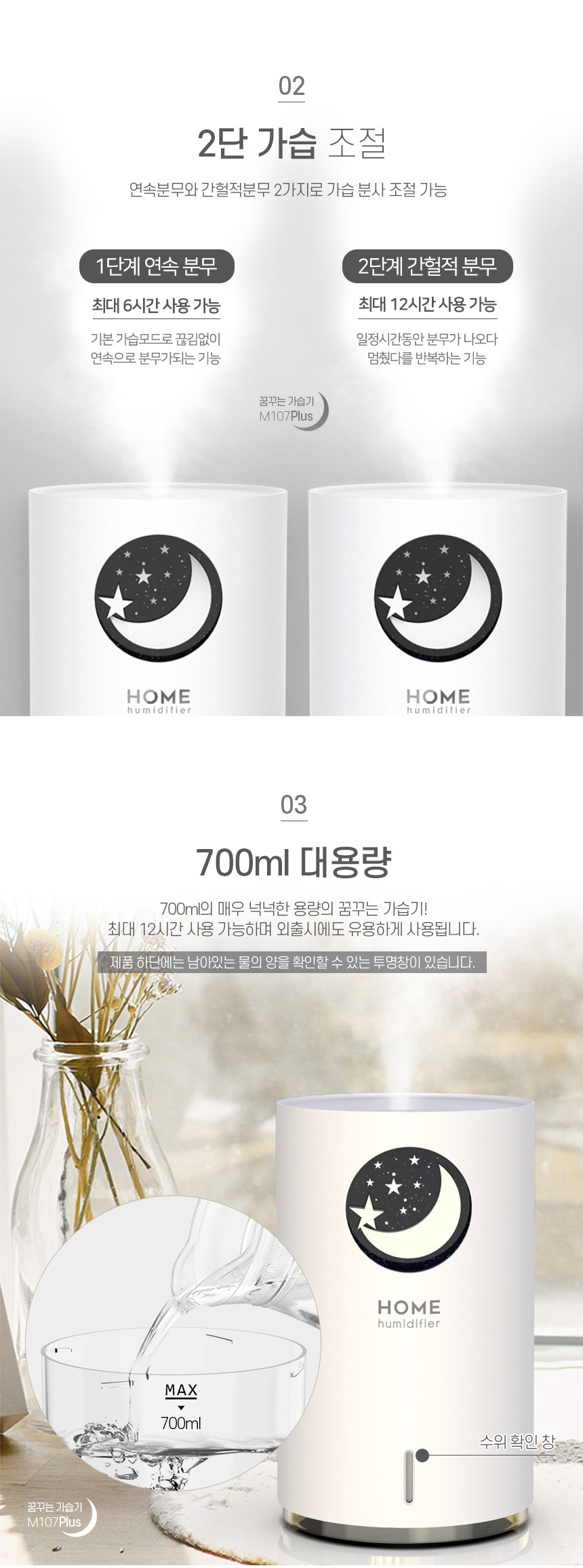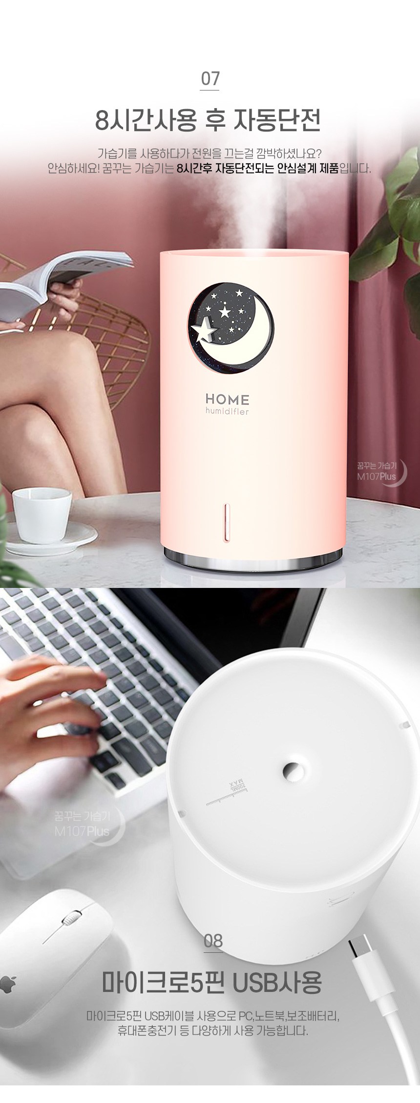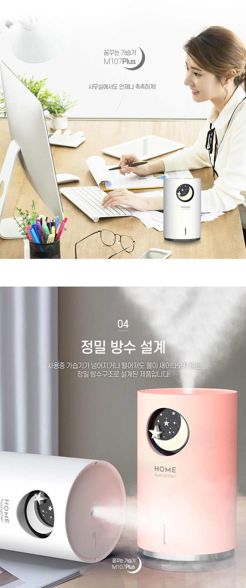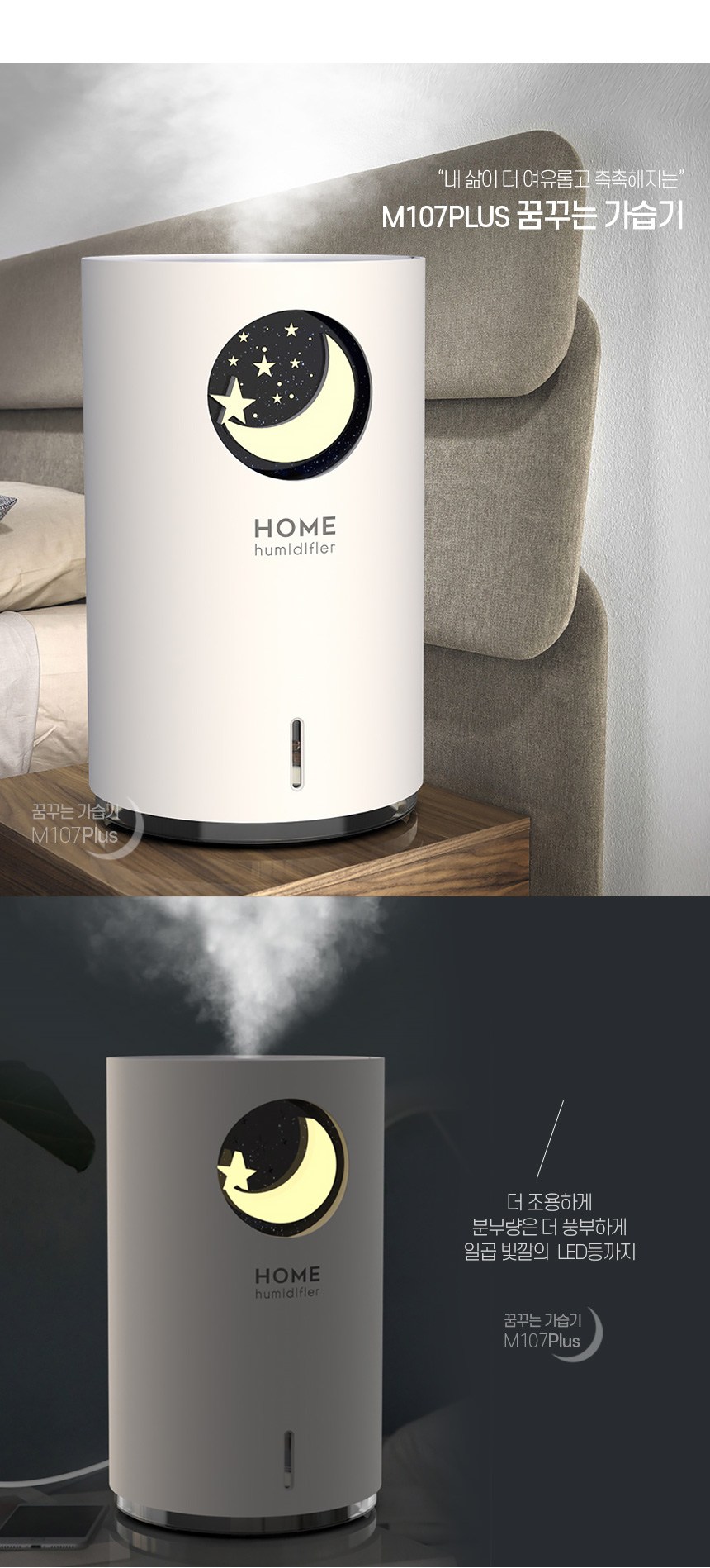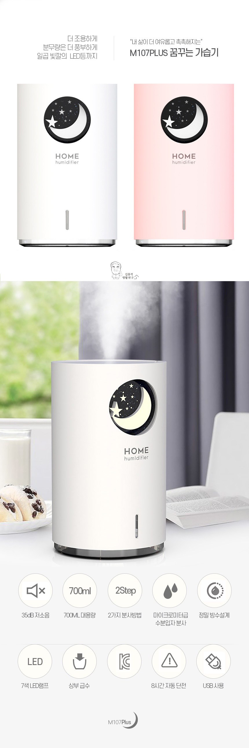 金容碩生活研究所夢想加濕器M107Plus,採用微米級水分子噴霧技術,能有效提升空氣濕度,舒緩乾燥不適。700ml大容量水箱,提供長達12小時的保濕,減少頻繁加水。具備連續和間歇兩種加濕模式,可根據需求調整。內建七彩LED燈,營造浪漫氛圍,同時也是夜間照明的好幫手。此外,產品具備8小時自動斷電功能,安全可靠,讓您使用。