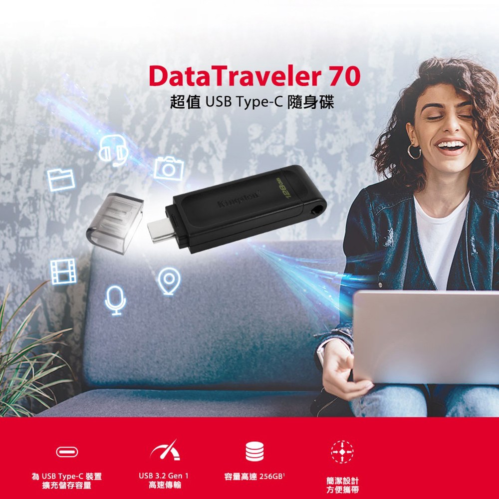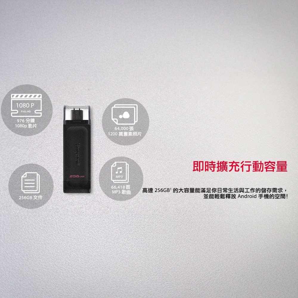 - 金士頓Type-C隨身碟,輕鬆連接手機與電腦,傳輸檔案超便利。