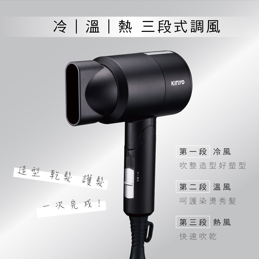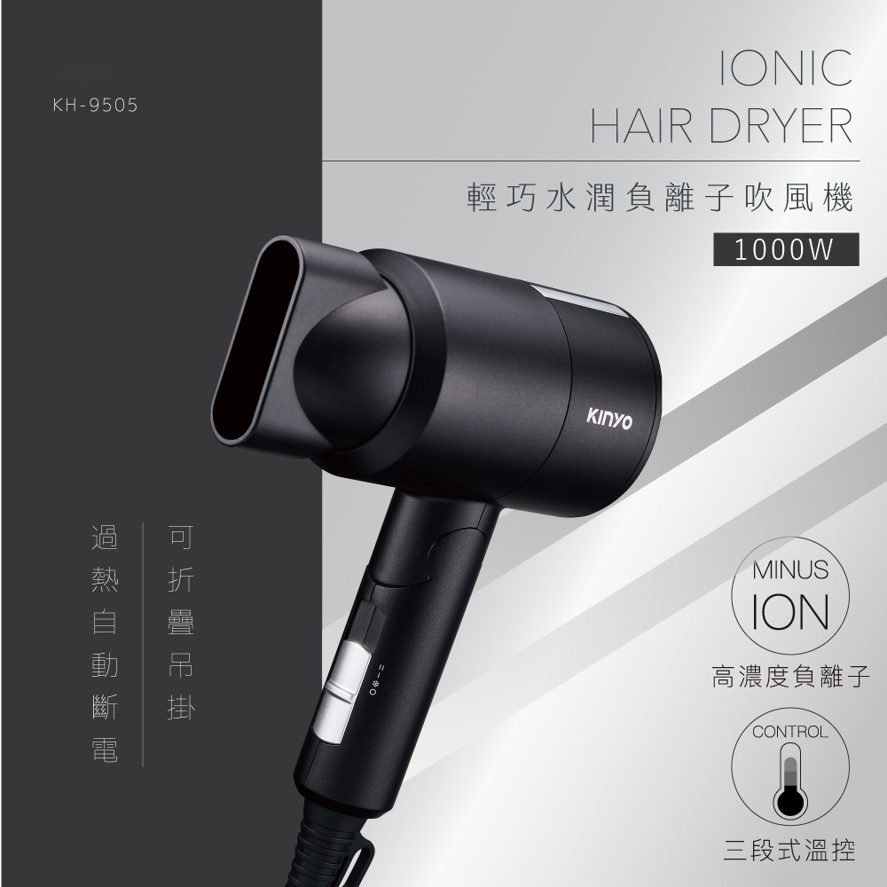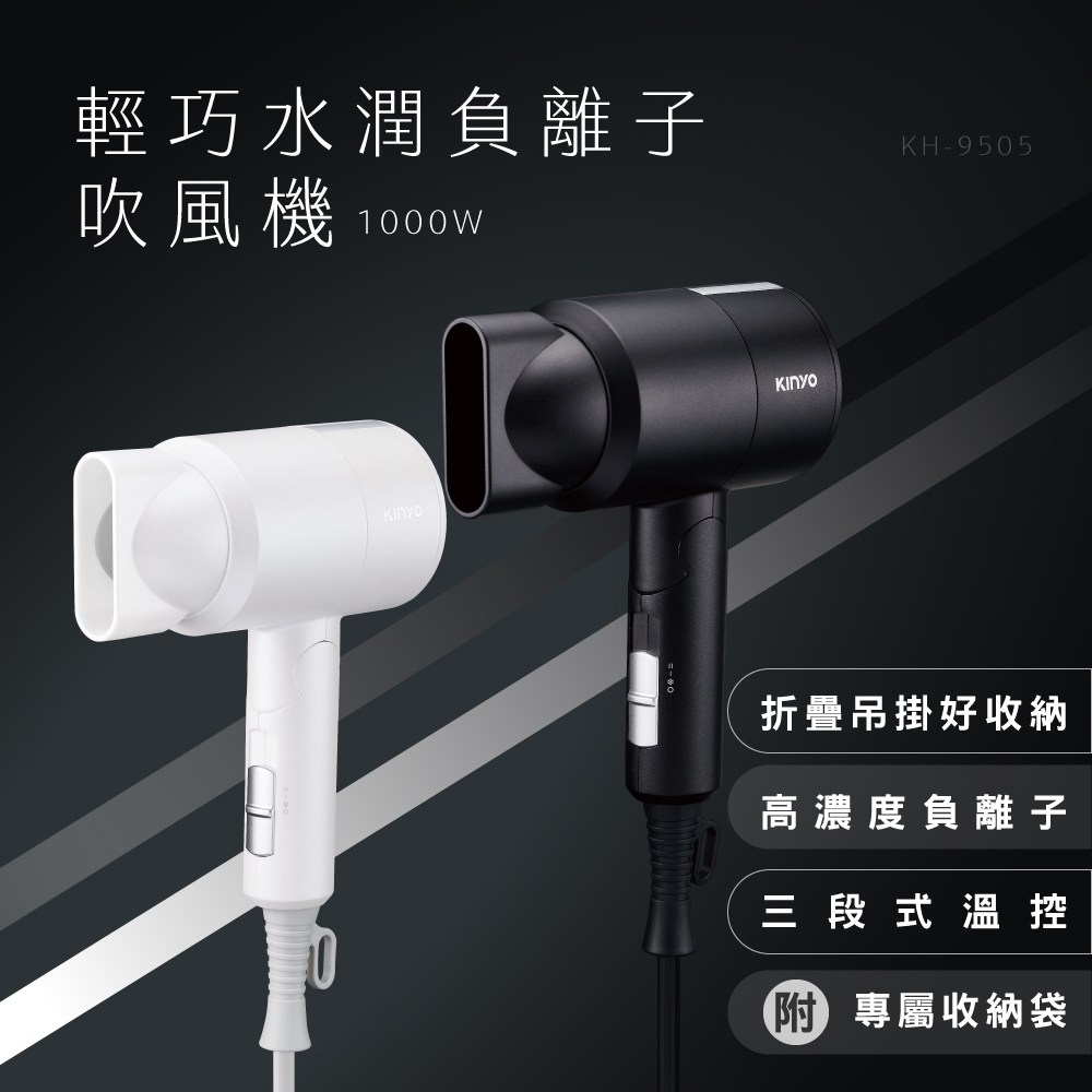 Kinyo 輕巧水潤負離子吹風機,型號KH-9505,是您居家和旅行的理想選擇。這款1000W吹風機採用負離子技術,有助於減少靜電,使頭髮更加柔順亮麗。它具有三段式溫控,可根據您的髮質和造型需求進行調整,同時內置過熱自動斷電保護裝置,確保使用安全。輕巧的設計,重量僅370g,加上可折疊功能和專屬收納袋,方便攜帶和存放。無論您是需要快速吹乾頭髮,還是精心打造髮型,這款吹風機都能滿足您的需求。