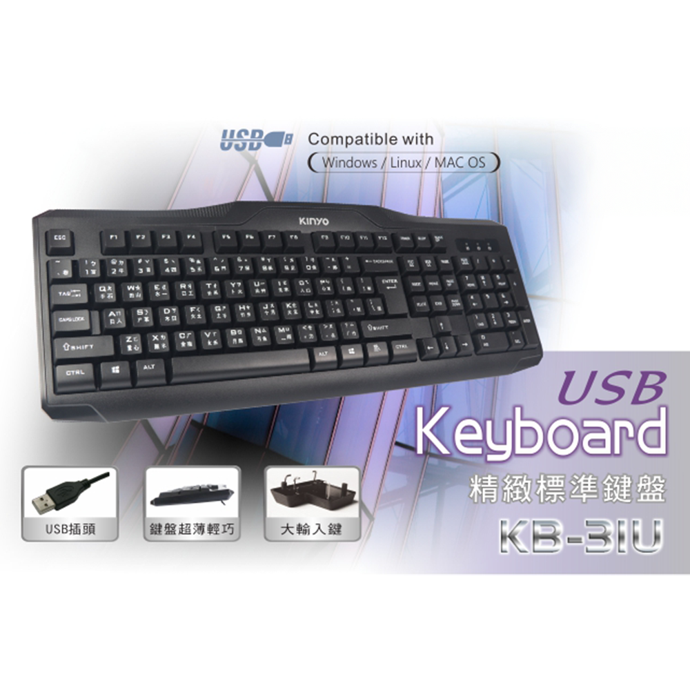 KINYO KB-31U USB 精緻標準鍵盤,為您的電腦提供可靠且舒適的輸入體驗。這款黑色鍵盤採用標準佈局,讓您輕鬆上手,無需適應期。鍵盤按鍵採用 UV 覆膜技術,文字不易脫落,確保長期使用壽命。底部導水孔設計,有效排除液體,降低意外潑灑造成的損壞風險。此外,鍵盤還具備電源管理功能鍵,方便您快速關機、睡眠或喚醒電腦。符合人體工學的傾斜支架,提供舒適的輸入角度,減輕長時間使用造成的疲勞。