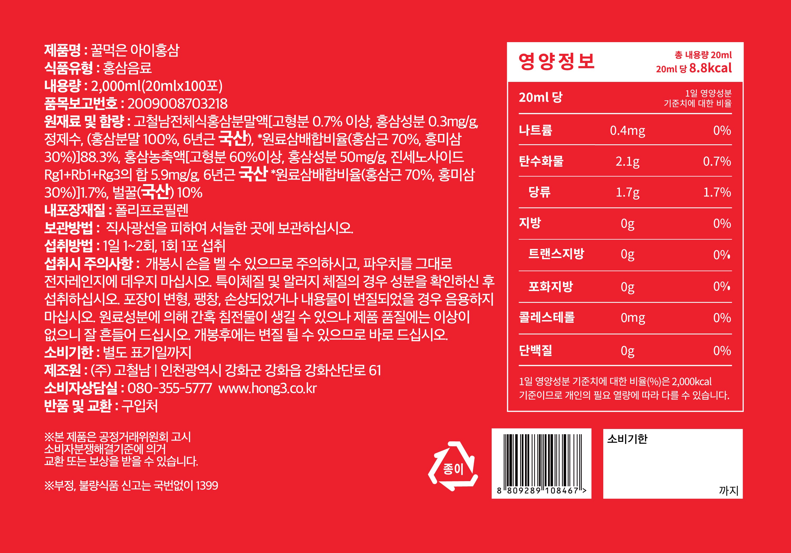 - 添加韓國產蜂蜜調和,口感香甜滑順,讓孩子愛不釋手,輕鬆補充營養,告別傳統紅蔘的苦澀味。