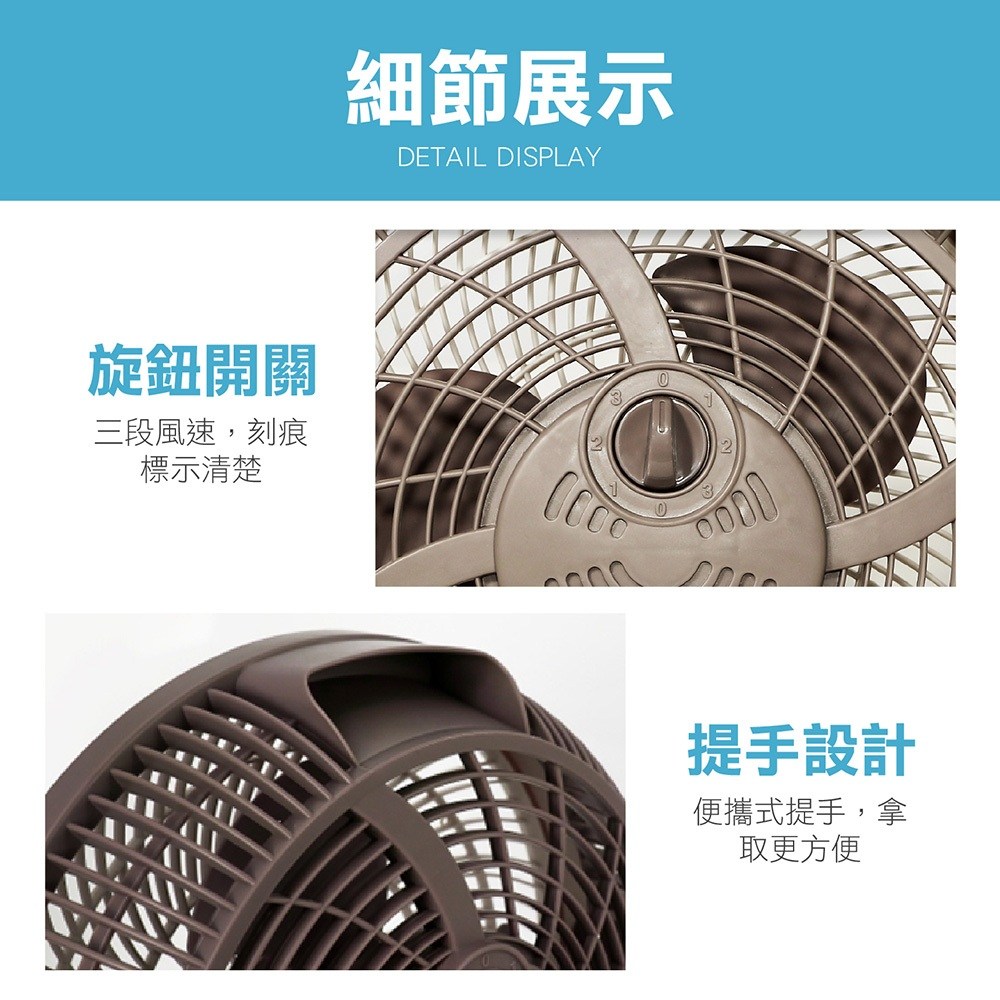 - 11吋扇葉大小適中,不佔空間,輕鬆擺放在桌面或地面,隨時享受清涼舒適的風。