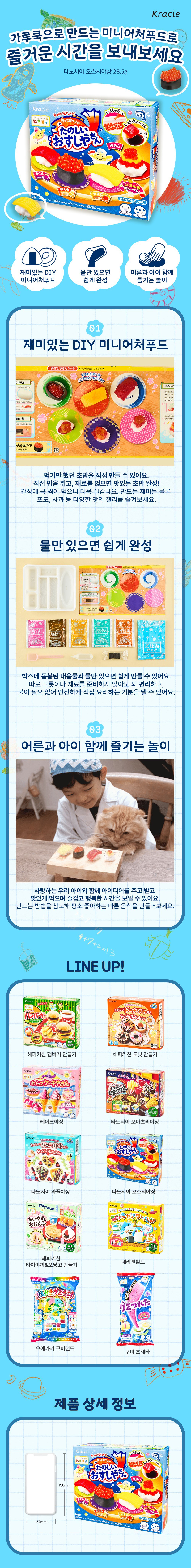 Kracie 知育菓子日本壽司系列DIY套組,讓您體驗親手製作美味壽司的樂趣!模擬真實壽司製作過程,從捏製壽司飯到擺放食材,每一步都充滿驚喜。內含多種口味的材料,包括鮭魚卵、鮪魚、玉子燒等,色彩繽紛,令人食指大動。產品操作簡單,只需加水即可輕鬆完成,無需開火,安全又衛生。製作過程中,父母可以和孩子一起發揮創意,製作獨一無二的壽司,享受親子同樂的時光。
