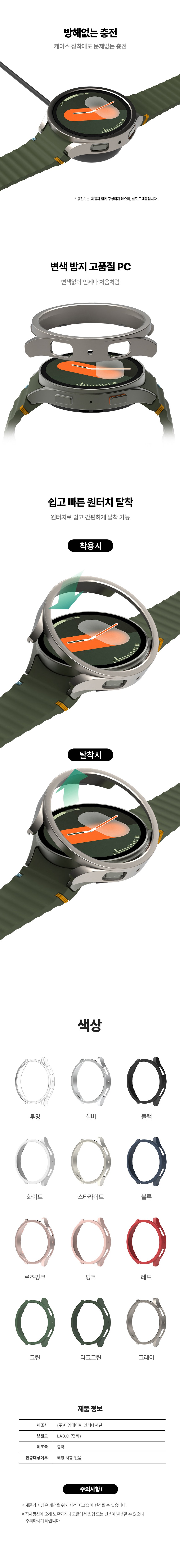 LAB.C 全蓋硬蓋智慧手錶保護殼為您的 Galaxy Watch7 44mm 提供全方位保護。採用纖薄的超薄設計,輕巧柔軟,與手錶完美貼合。PC 材質有效緩解衝擊,保護手錶免受跌落損害。一體式開孔結構不影響按鈕操作和觸控,保持螢幕操作的靈敏度。即使裝上保護殼也能順暢充電,簡單快速的一鍵式拆裝設計,方便您隨時更換。