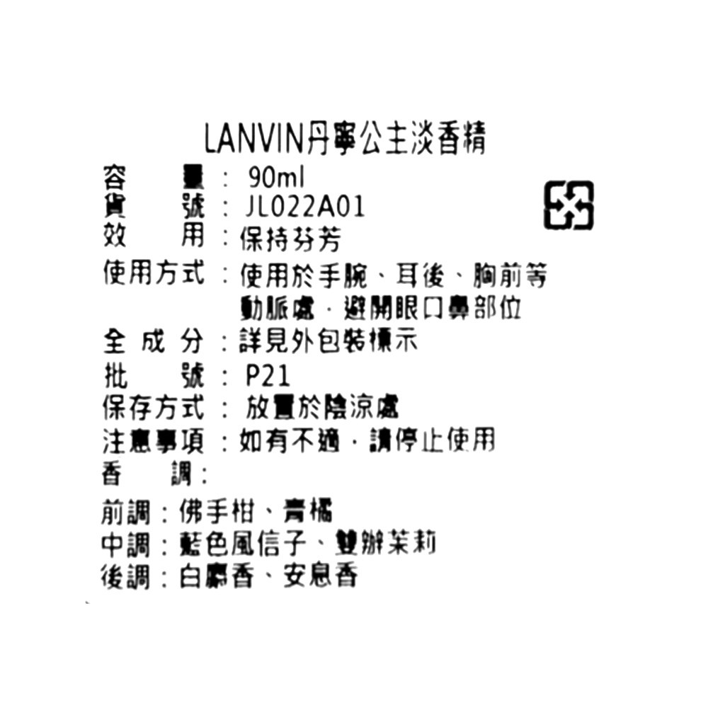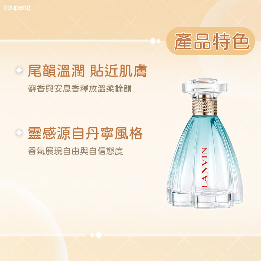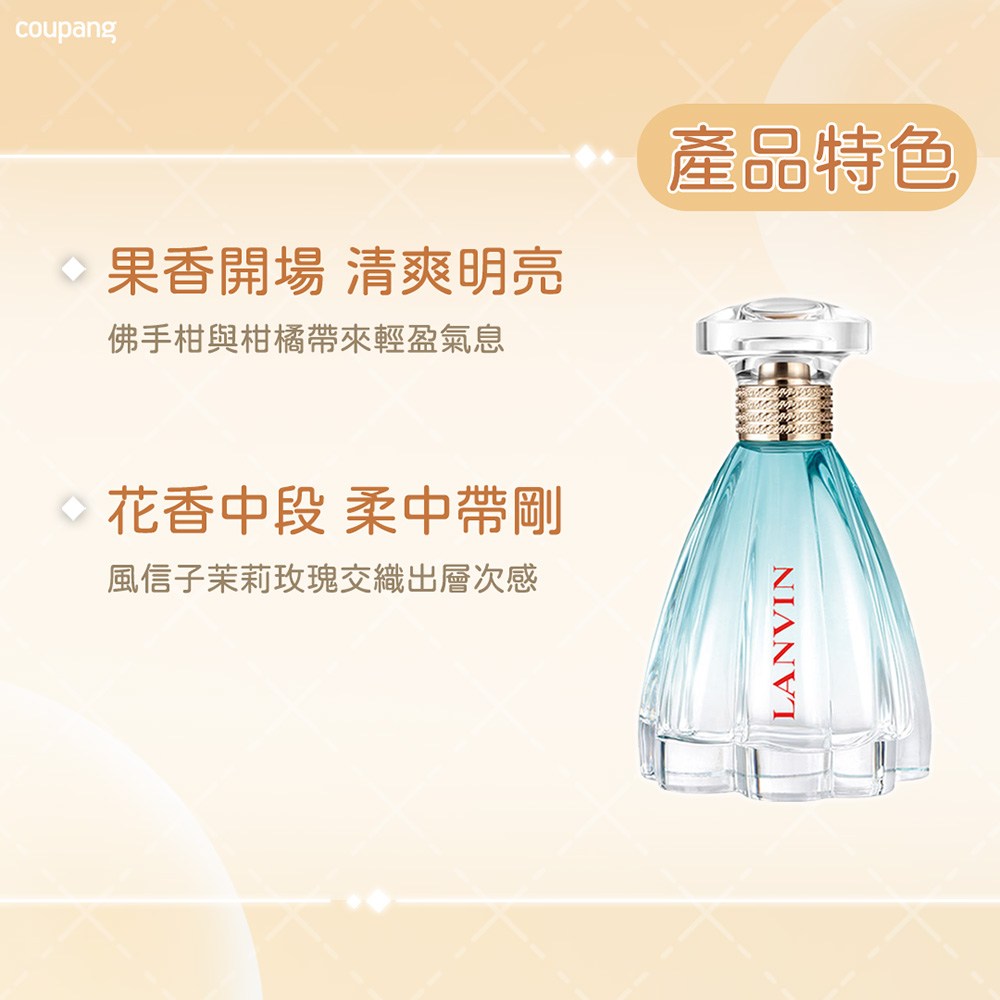 LANVIN 浪凡丹寧公主淡香精是一款充滿自由與自信的香氛。前調以佛手柑和青橘的清新果香開啟,帶來明亮愉悅的感受。中調則由藍色風信子和茉莉交織出柔美層次,展現女性的優雅氣質。最後,白麝香和安息香的溫潤尾韻,為肌膚留下持久的迷人香氣。這款香水適合各種日常場合,輕鬆駕馭不同風格,展現現代女性的獨特魅力。