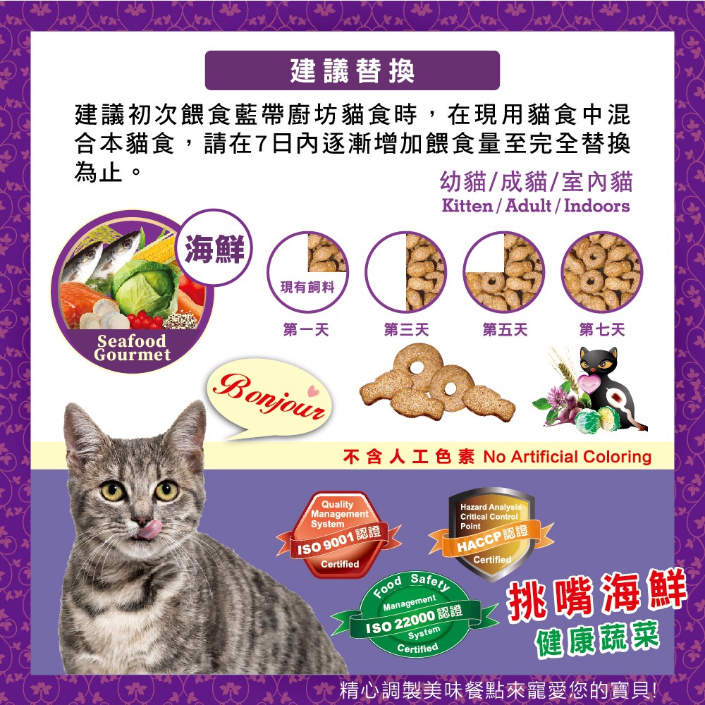 - 藍帶廚坊海鮮貓糧,挑嘴貓咪也能享受的美味,豐富海鮮讓貓咪愛不釋手,食慾大增。