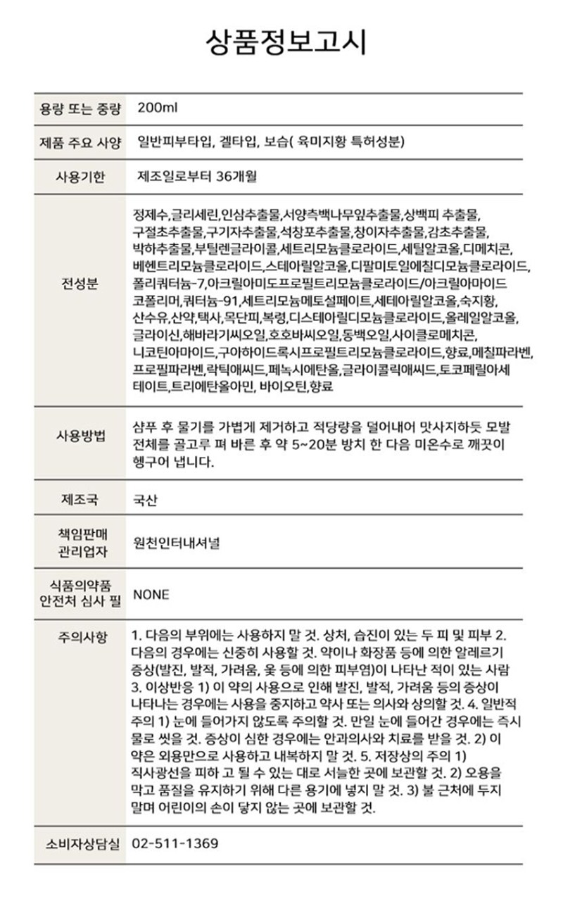 LEE MOON WON 深層頭髮護理包, 200ml, 1入