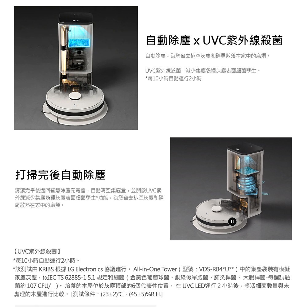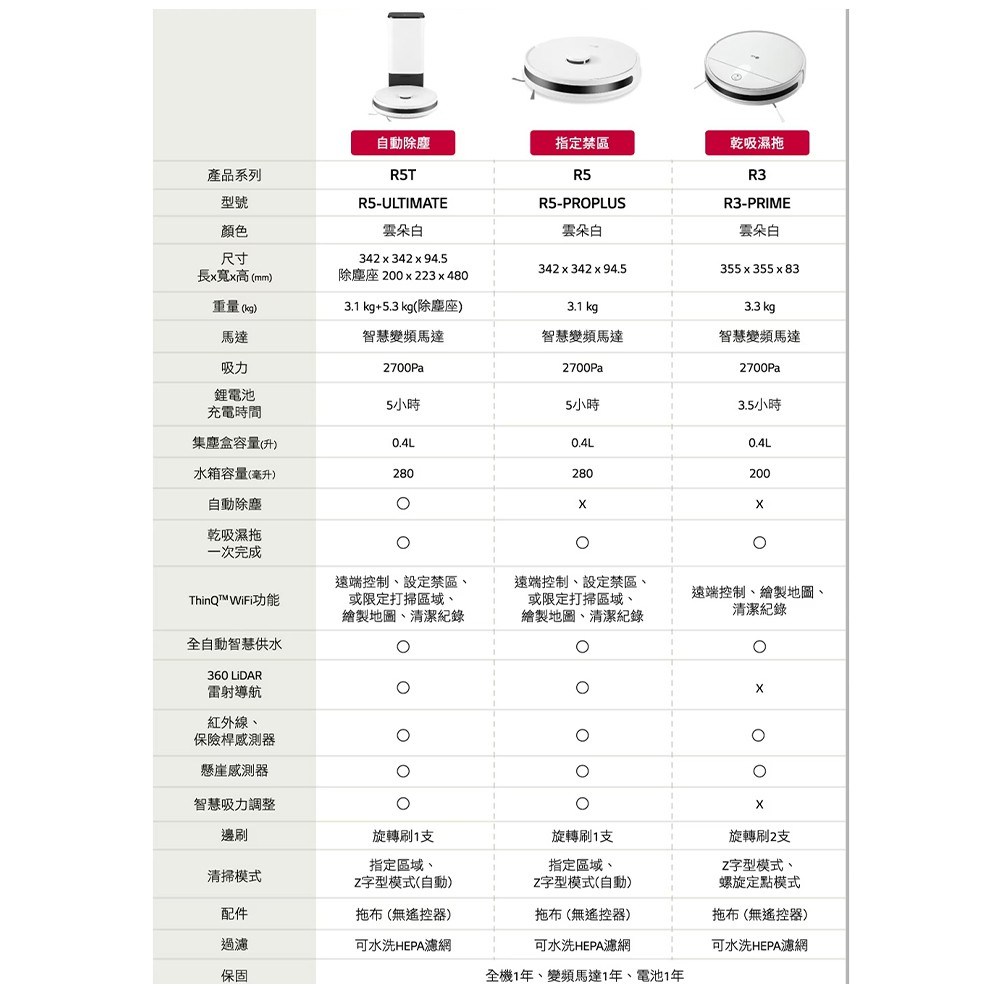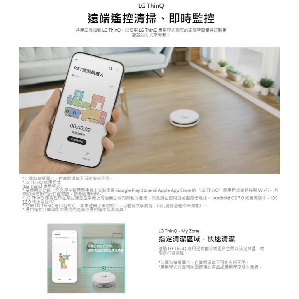 LG R5-ULTIMATE1 智慧聯網自動除塵變頻濕拖清潔機器人,以白色簡約外觀設計,輕鬆融入各種居家風格。這款機器人具備智慧聯網功能,讓您隨時隨地透過手機App操控,輕鬆設定清潔排程。自動除塵功能讓您無需頻繁清理集塵盒,省時省力。變頻濕拖技術能有效清潔地板,讓居家環境更加乾淨舒適。LG以其卓越的品牌信譽和嚴格的品質把關,為您提供值得信賴的清潔體驗。