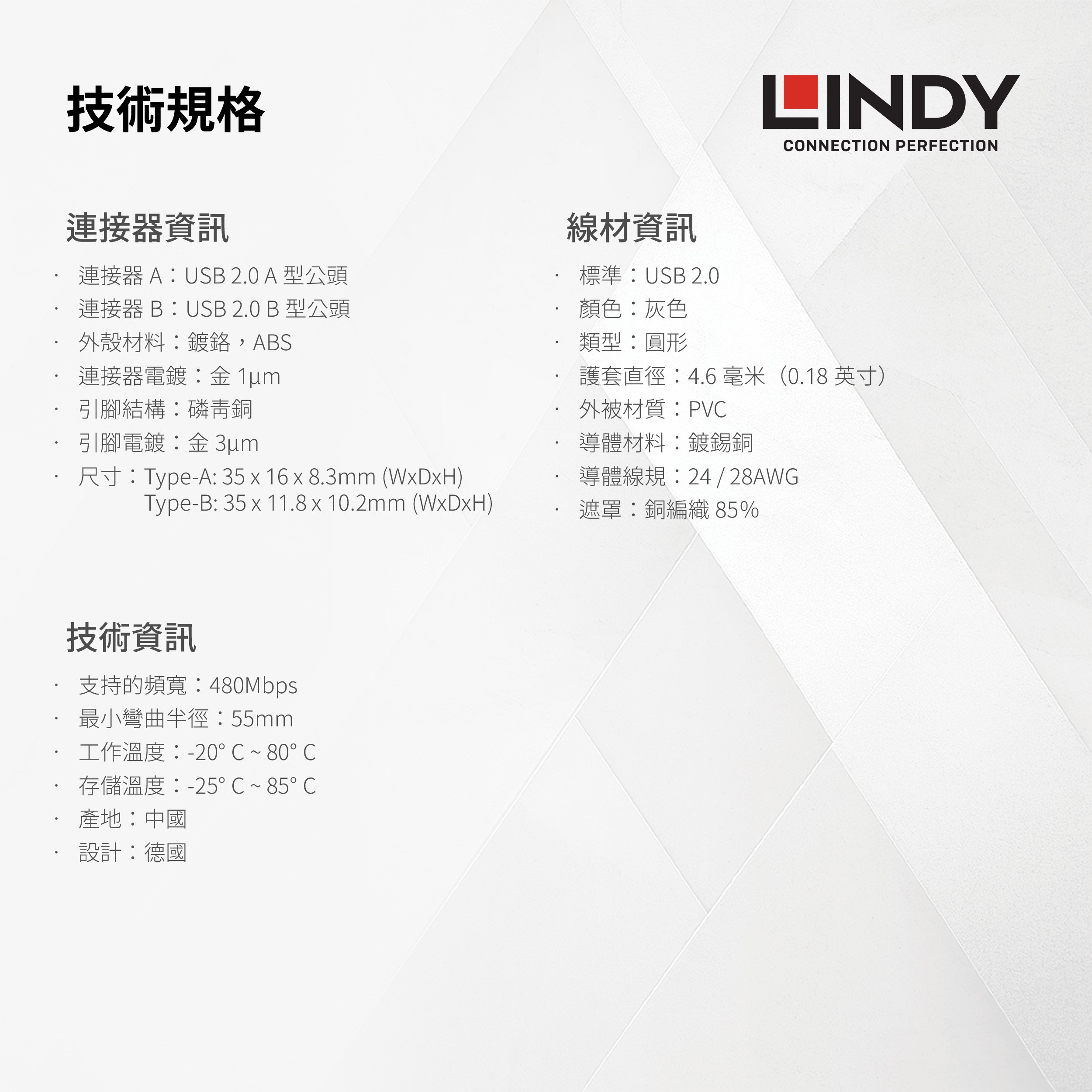 品質保證,安心首選! 卓越的性能和設計USB 2.0 A型接B型資料線 支援高達480Mbps的資料傳輸速率 鍍鉻設計ABS外殼,鍍金連接器和觸點 雙遮罩線纜,耐腐蝕,高性能鍍錫銅導線