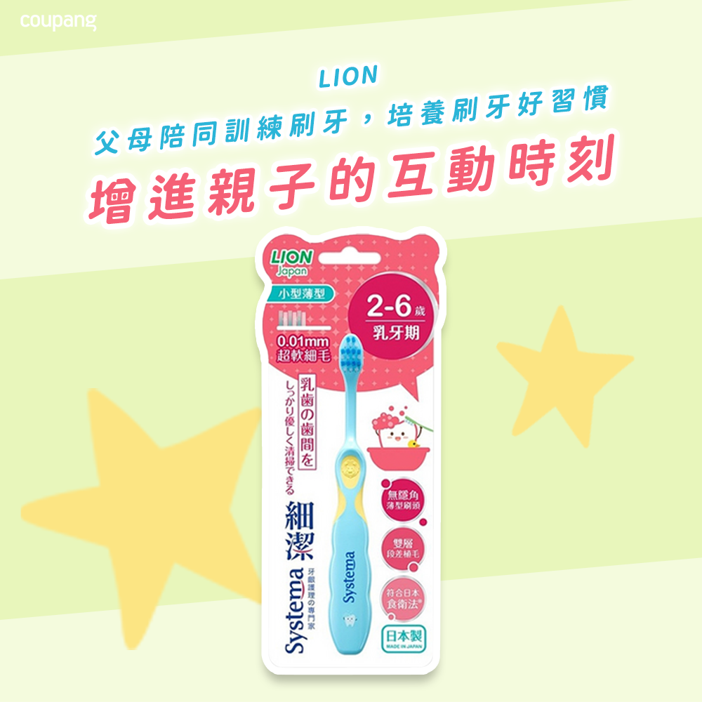 LION 獅王細潔兒童專業護理牙刷專為2-6歲的寶寶設計,呵護乳牙健康。超柔軟細毛深入清潔牙縫,溫和呵護寶寶嬌嫩的牙齦,讓刷牙成為舒適的體驗。刷頭小巧輕薄,靈活深入口腔各個角落,有效清潔每一顆牙齒。防滑刷柄設計,讓寶寶輕鬆掌握,養成良好的刷牙習慣。本產品符合日本食品衛生法,安全可靠,讓家長安心。