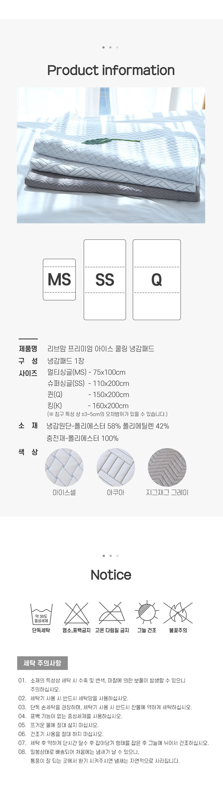 - 可直接於洗衣機清洗,方便清潔與收納,讓您隨時享受潔淨涼爽的睡眠環境。