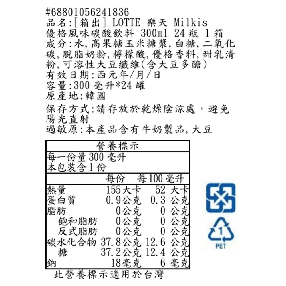 - 樂天Milkis優格風味,氣泡細緻,口感清爽,帶來愉悅的味蕾體驗。