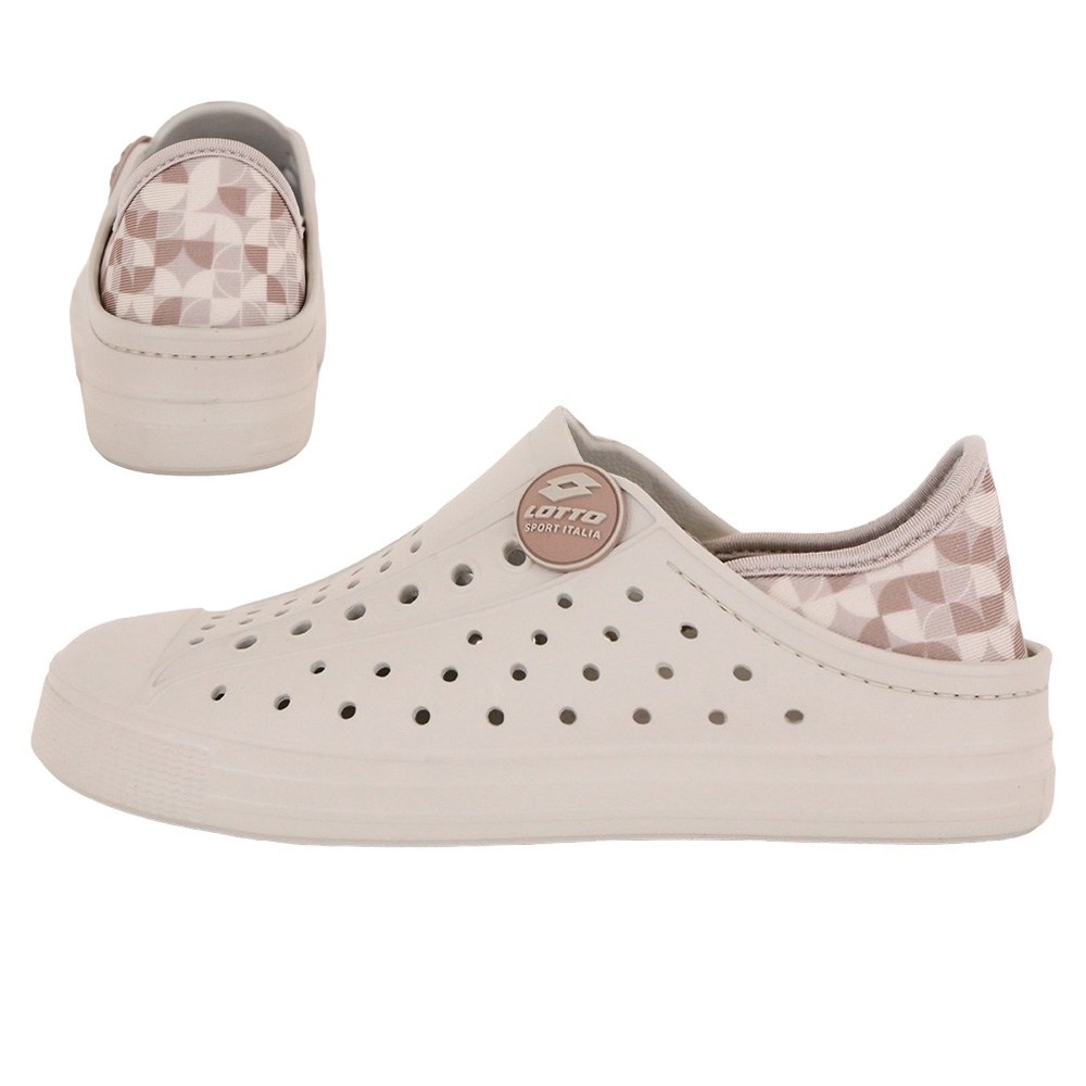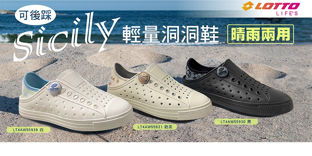 LOTTO 樂得 Sicily 女用輕量洞洞鞋,讓妳輕鬆穿出時尚感!這款奶茶色的洞洞鞋採用輕盈Q彈的EVA材質製成,柔軟舒適又防水,非常適合日常穿搭或戶外活動。鞋面上的透氣孔設計,能有效散熱排汗,保持雙腳乾爽舒適。後跟可踩踏設計,一鞋兩穿,方便又實用。台灣製造,品質保證,讓妳穿得安心又舒適!