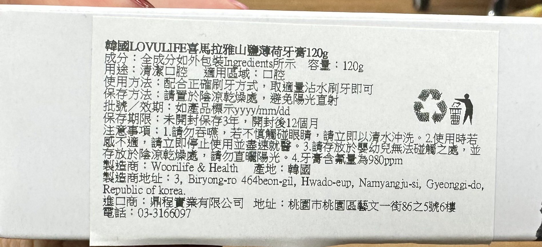 LOVULIFE 喜馬拉雅山鹽薄荷牙膏,來自韓國的口腔護理新選擇,為您帶來全方位的口腔護理體驗。低氟配方,適合一般成人使用,溫和呵護牙齦,有效清潔牙齒,去除牙菌斑,讓您擁有清新口氣,展現自信笑容。獨特配方,舒緩牙齦,淨化口腔,打造清新健康的口腔環境。