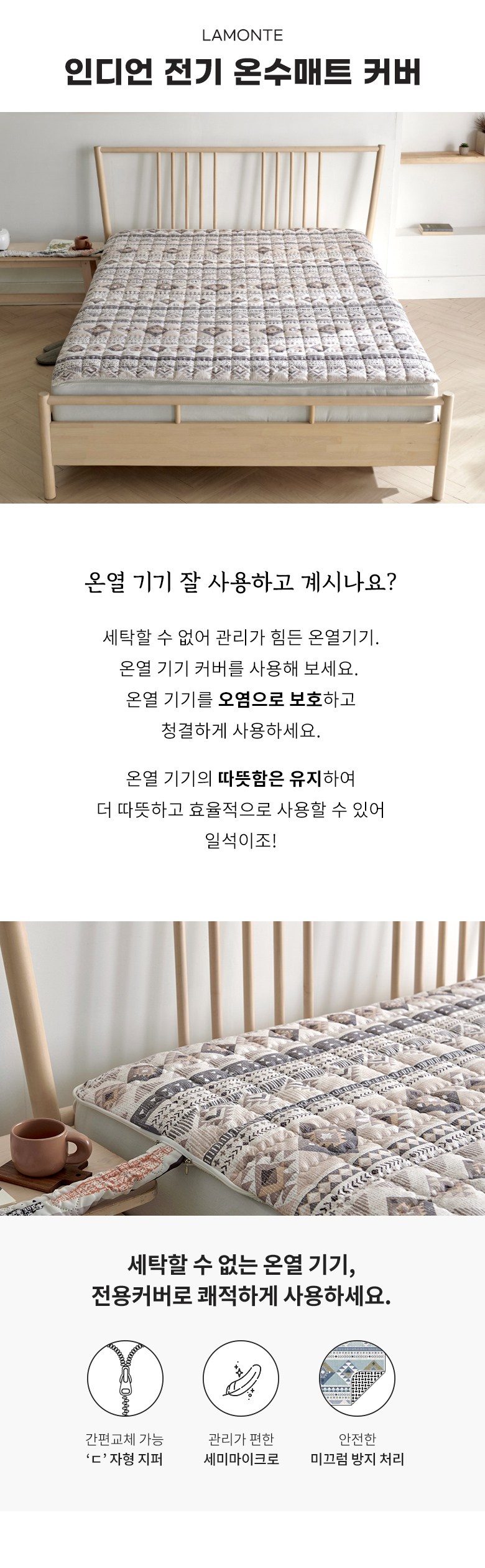 Lamonte電熱水墊套採用韓國產新棉與半超細纖維材質,觸感柔軟舒適,為您打造溫暖舒適的睡眠環境。獨特的「ㄷ」字型拉鍊設計,方便拆卸清洗,保持清潔衛生。背面防滑處理,有效防止墊子滑動,讓您使用。米色系的設計簡約大方,能輕鬆融入各種居家風格。有了這款電熱水墊套,讓您在寒冷的冬天也能享受溫暖舒適的睡眠。