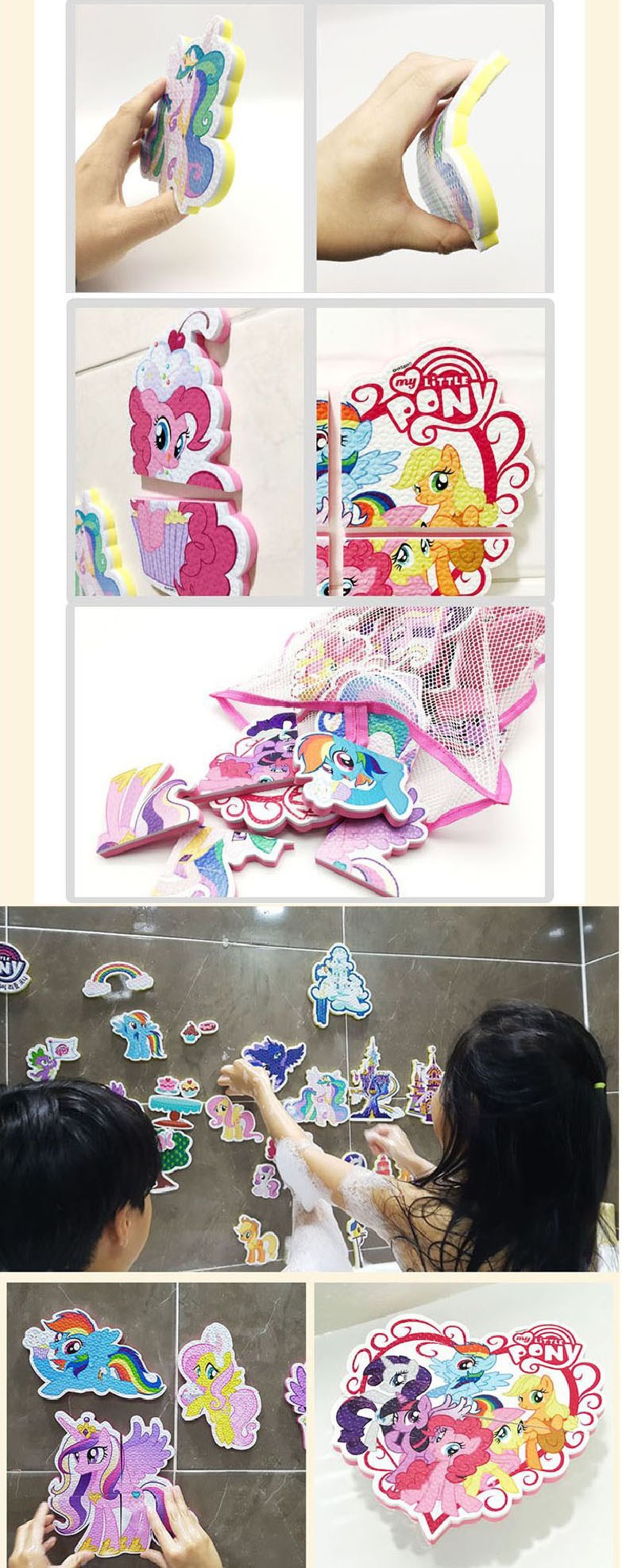 - 彩虹小馬沐浴貼紙讓孩子愛上洗澡,可重複使用,增添洗澡樂趣與親子互動。