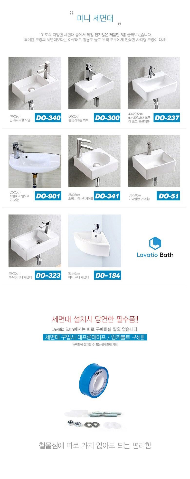 Lavatio Bath迷你洗手台DO-300,專為小空間設計,尺寸精巧,不佔用過多浴室空間。長方形設計簡約時尚,易於融入各種風格的浴室裝潢。此款洗手台不僅外觀精美,更注重實用性,讓您在有限的空間內也能享受舒適的洗漱體驗。購買即附贈安裝所需的鐵氟龍膠帶與壁虎螺絲,省去您額外採購的麻煩,安裝更加便捷。無論是單身公寓還是小戶型住宅,Lavatio Bath迷你洗手台都是您的理想之選。