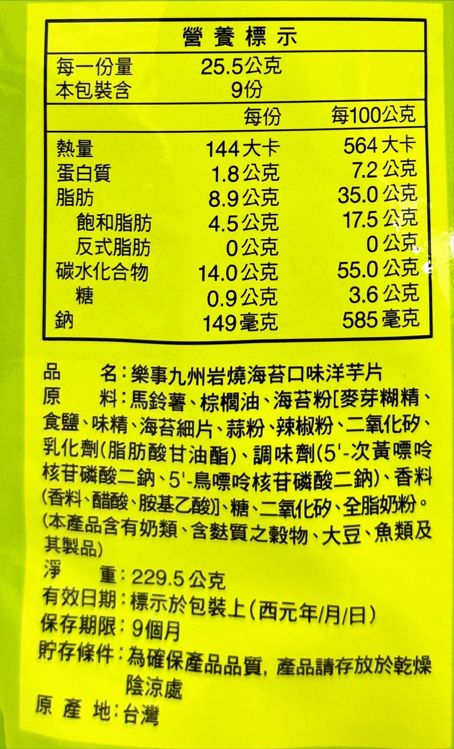 - 樂事岩燒海苔洋芋片,口感酥脆,每一口都充滿海苔的鮮美滋味,令人回味無窮。