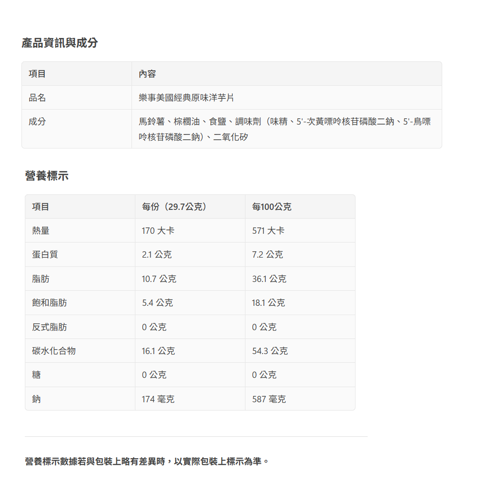 - - 樂事經典原味洋芋片,口感酥脆,每一口都充滿馬鈴薯的自然香氣,令人回味無窮。
