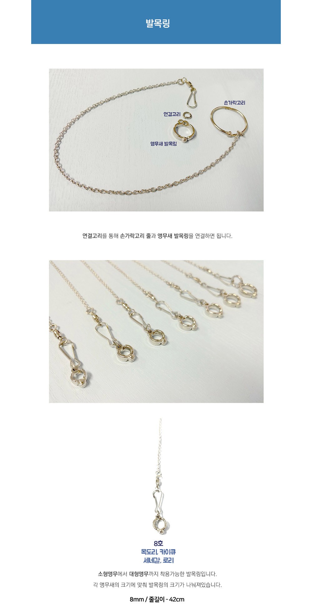 這款Leaf Ferret新腳環是專為鸚鵡設計的玩耍和訓練用品。它包含三個8號腳環,適用於環頸鸚鵡、凱克鸚鵡、塞內加爾鸚鵡和虹彩吸蜜鸚鵡等多種鸚鵡。使用連接環可以輕鬆連接手指環鏈和鸚鵡腳環,增加互動性。不同尺寸的腳環適合從小鸚鵡到大鸚鵡佩戴,讓您的愛鳥在安全舒適的環境中玩耍和鍛鍊。此產品不僅能豐富寵物的生活,還能促進它們的身心健康。