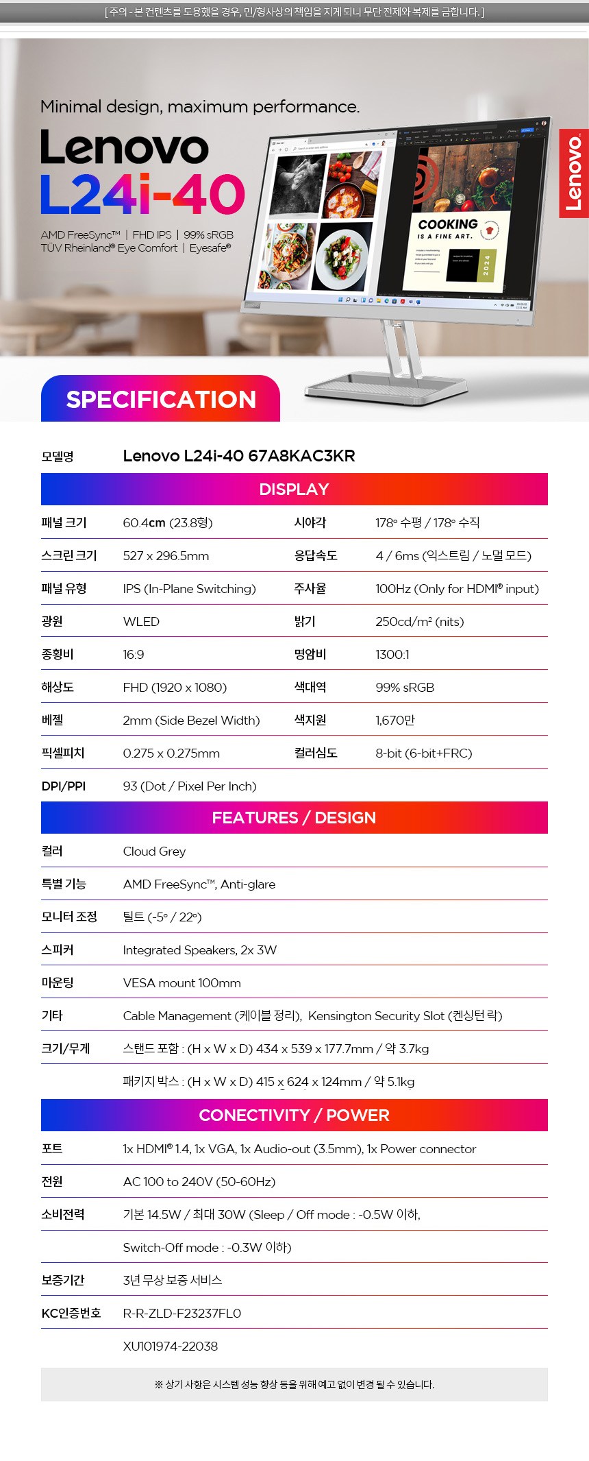 - 23.8吋FHD螢幕,提供清晰細膩的視覺體驗,讓您沉浸在生動的影像世界中。