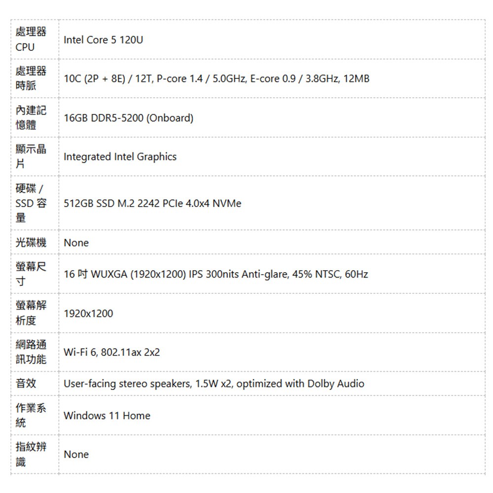 - Intel Core 5處理器,提供流暢效能,滿足日常文書處理需求。
