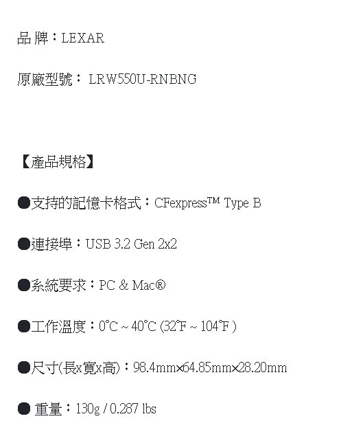 Lexar 雷克沙 高速讀卡機 LRW550U 支援 CFexpress Type B USB 3.2, 1個