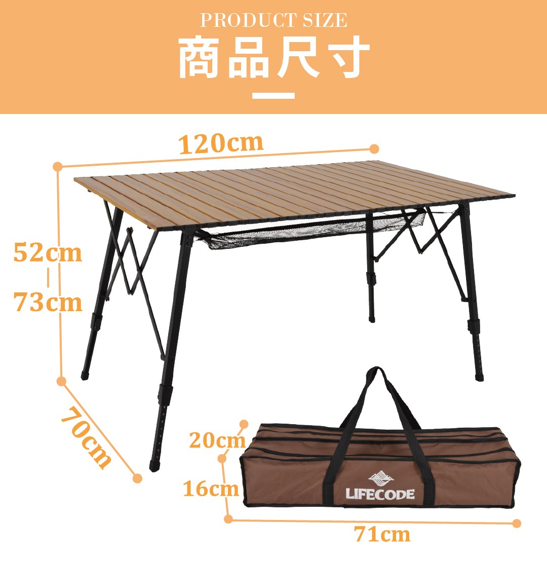 LIFECODE 爵士可調段鋁合金蛋捲桌,為您的戶外露營體驗帶來極致便利與舒適。這款120 x 70公分的磨砂黑折疊桌,採用輕量化鋁合金材質,堅固耐用且易於攜帶。獨特的蛋捲式桌面設計,展開迅速,收納體積小,附贈收納袋方便您輕鬆帶著走。可調節高度設計,讓您在不同地形都能找到最舒適的使用高度,無論是野餐、露營或戶外聚會,都能提供穩固且寬敞的桌面空間,讓您盡情享受戶外時光。