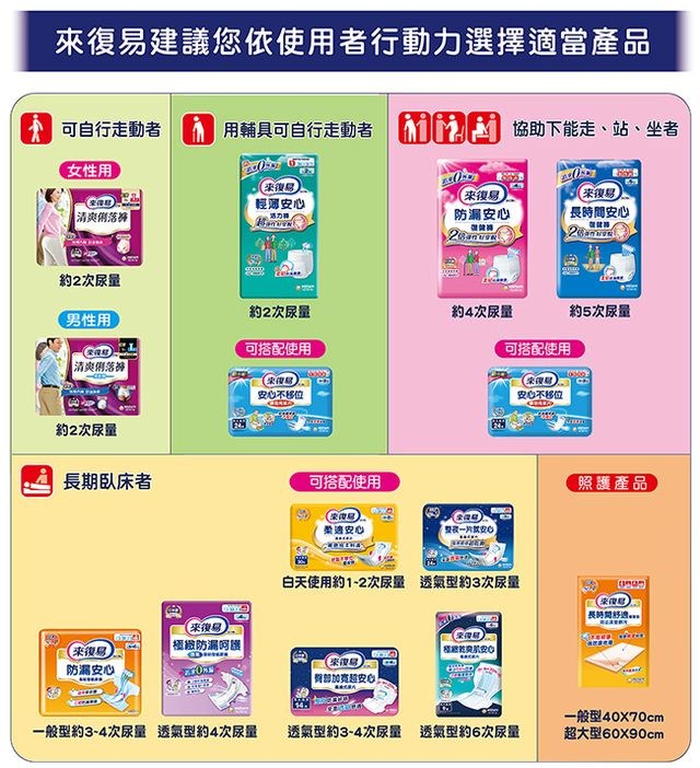 - 來復易復健褲提供舒適體驗,讓您活動自如,享受無拘束的每一天。