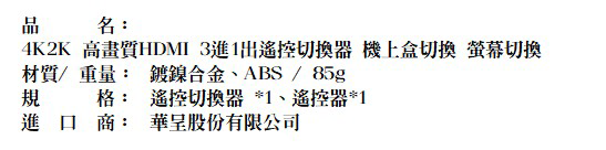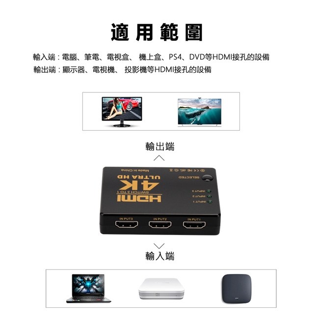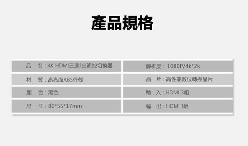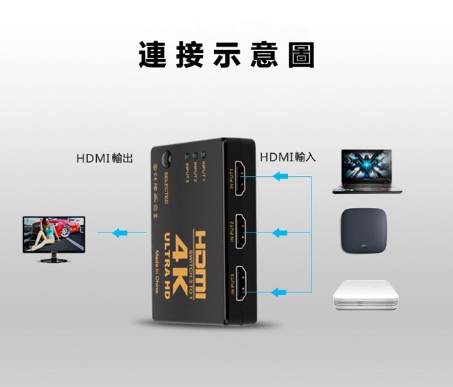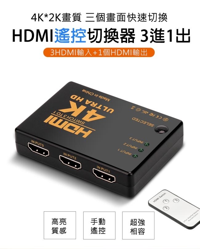 Line Q 4K2K 高畫質HDMI 3進1出機上盒螢幕遙控切換器, 1個, UH-7593C