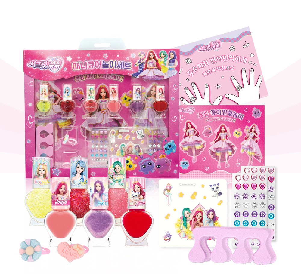 - 秘密 Jouju 美甲遊戲組包含多種美甲工具,讓孩子們體驗專業美甲的樂趣,激發想像力。