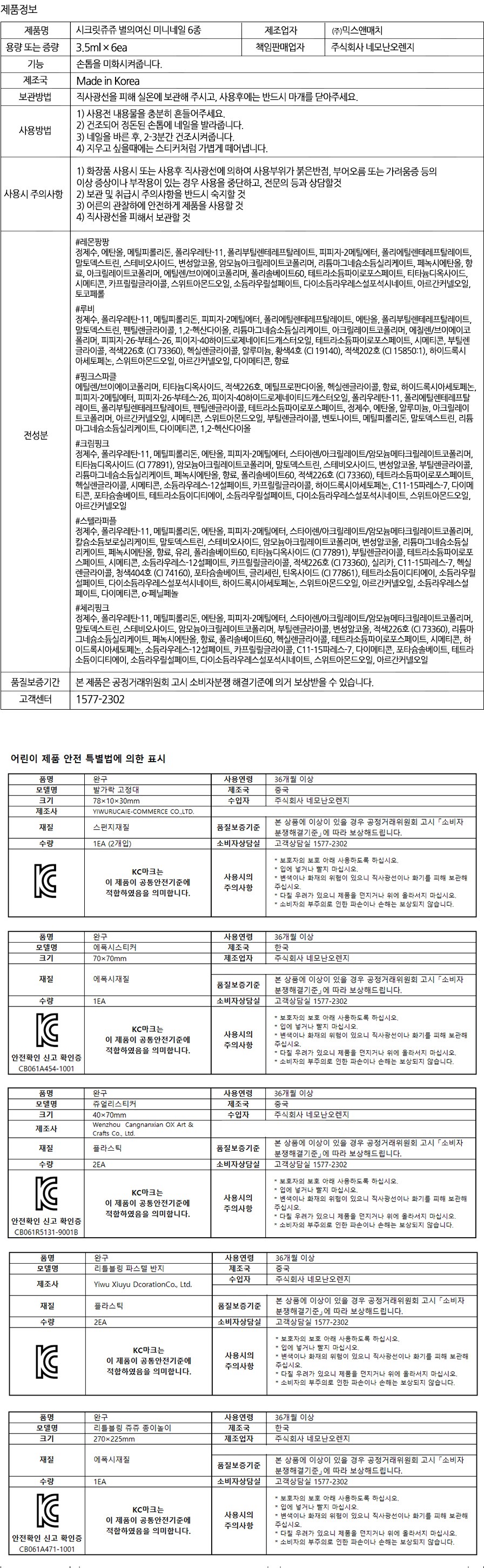 - 這款指甲油遊戲組採用安全配方,呵護孩子嬌嫩的指甲,讓家長安心選購。