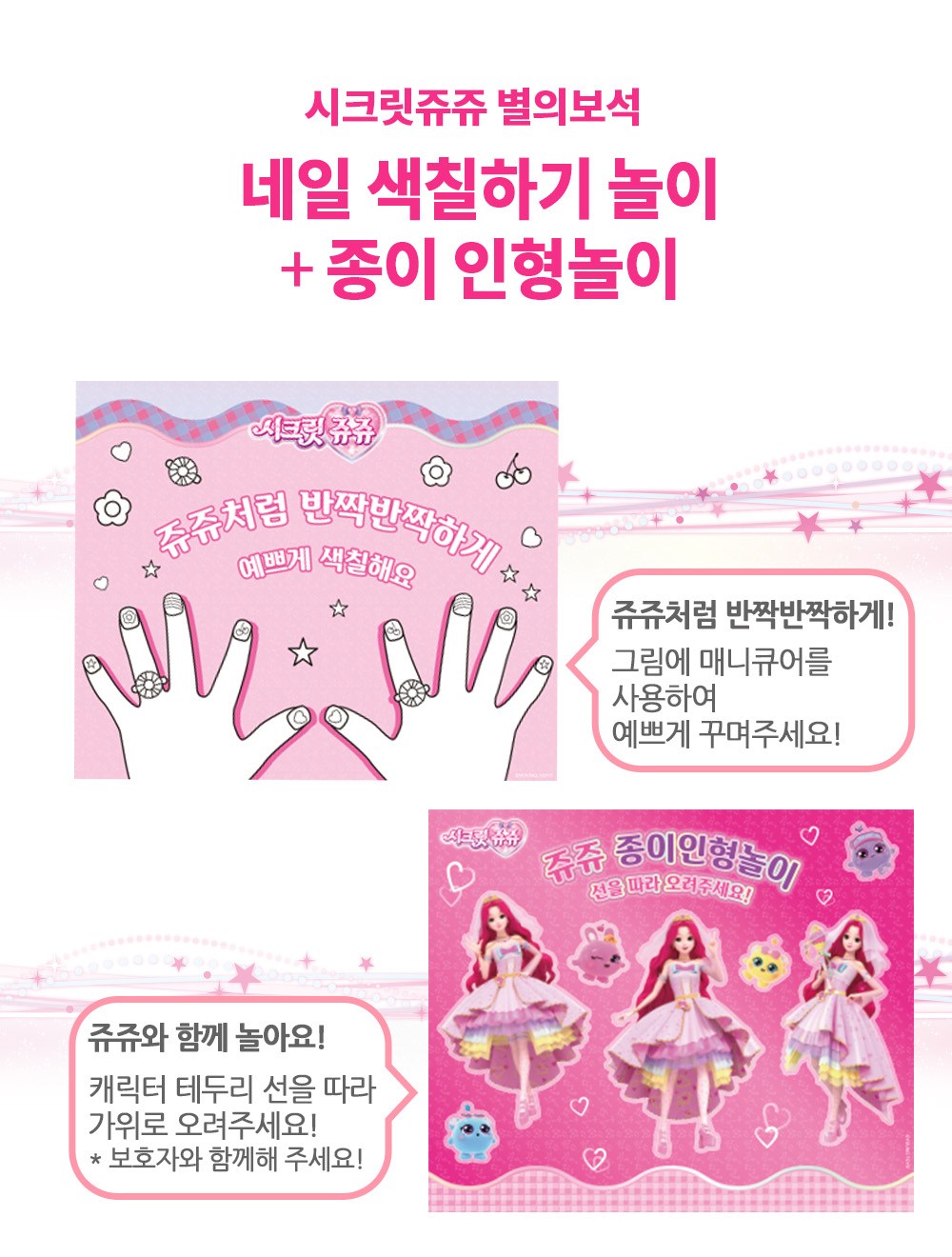 Little Bling Secret Jouju 星星女神迷你指甲油遊戲組,是專為兒童設計的美甲玩具。這款遊戲組包含六種不同顏色的迷你指甲油,以及多種美甲配件,如分趾器、粉彩戒指、珠寶貼紙和毛球貼紙,讓孩子們可以盡情發揮創意,打造獨一無二的美甲造型。指甲油採用水性配方,低刺激性,容易卸除,呵護孩子嬌嫩的指甲。此外,遊戲組還附贈指甲彩繪遊戲和紙娃娃遊戲,增加趣味性。讓孩子們在玩樂中培養美感和創造力。