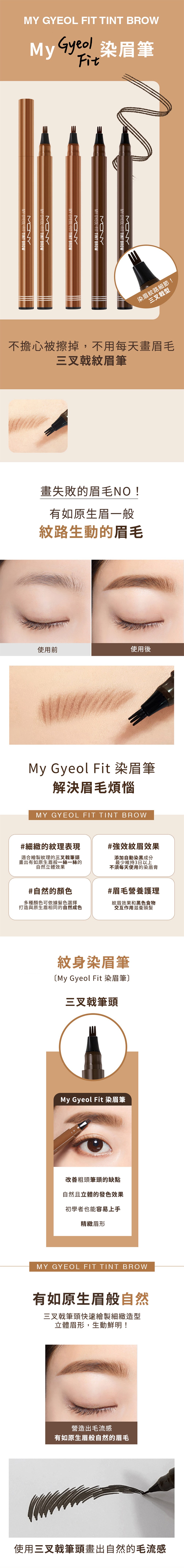 - 三叉筆頭設計,能精準填補眉毛間隙,畫出根根分明的自然毛流感。