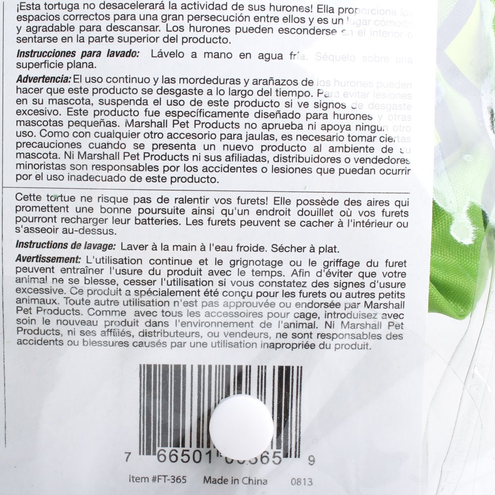 마샬 터틀 터널은 여러 마리 페렛이 함께 가지고 놀 수 있는 장난감입니다. 세척이 가능한 부드러운 플리스 패브릭으로 제작되었습니다. 이 제품의 크기는 24.13 x 19.18 x 7.62cm 입니다.
