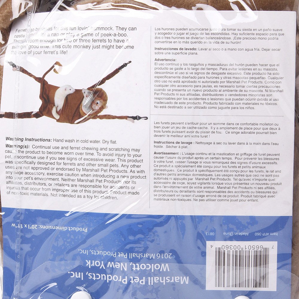 - 這款猴子造型掛床能讓您的寵物雪貂盡情玩耍,提供一個舒適的小窩,讓牠們可以安心休息和睡覺。
