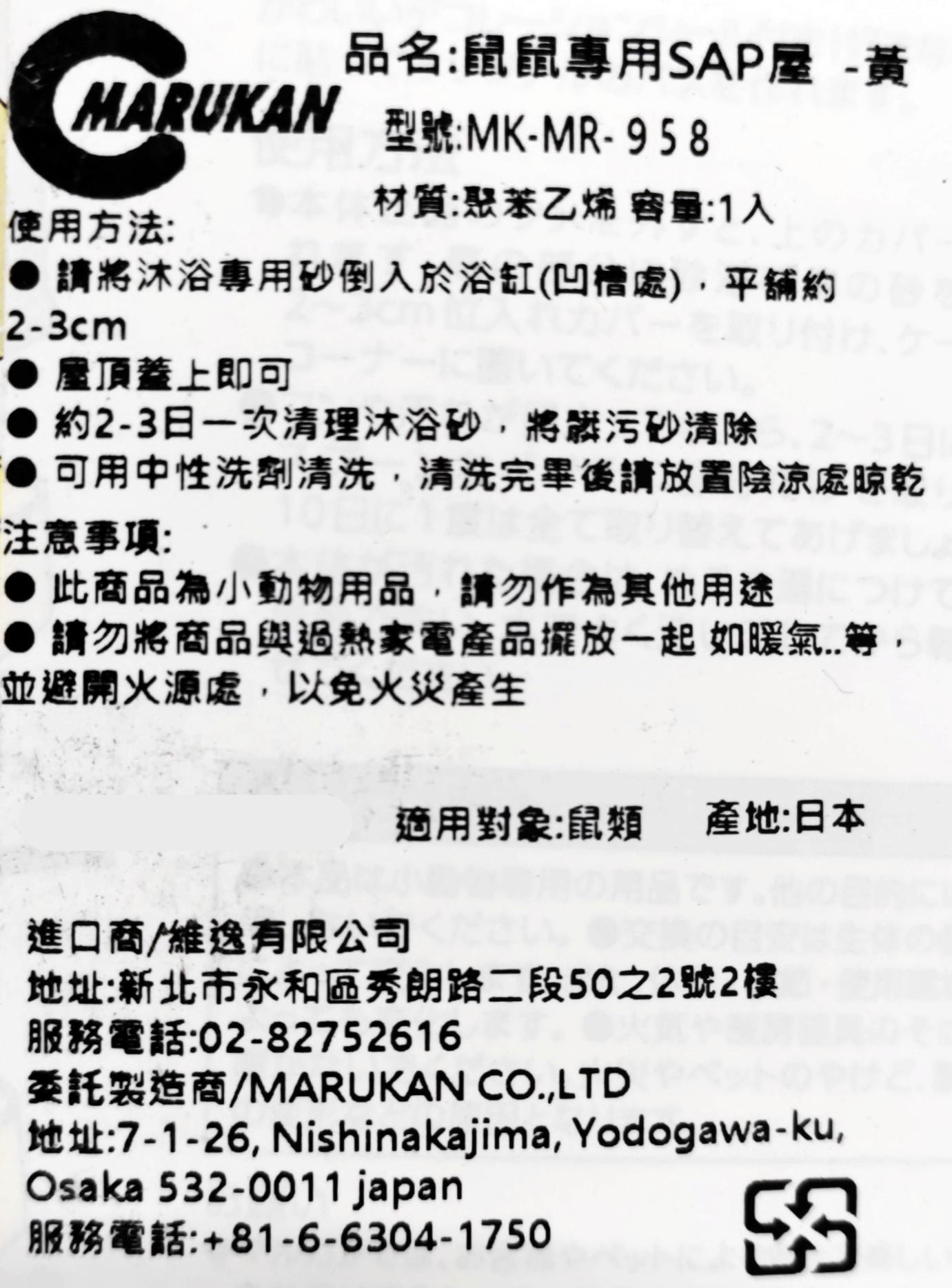 MARUKAN 鼠鼠專用SAP屋,為您的鼠鼠打造一個乾淨舒適的沐浴空間。這款黃色系的沐浴屋,型號為MK-MR-958,採用透明上蓋設計,保持籠內清潔。獨特的角落設計,能完美貼合籠子角落,節省空間。內附裝飾貼紙,讓您可以自由裝飾,增添樂趣。適用於各種鼠類,讓您的寵物鼠享受舒適的沙浴體驗,保持毛髮清潔健康。