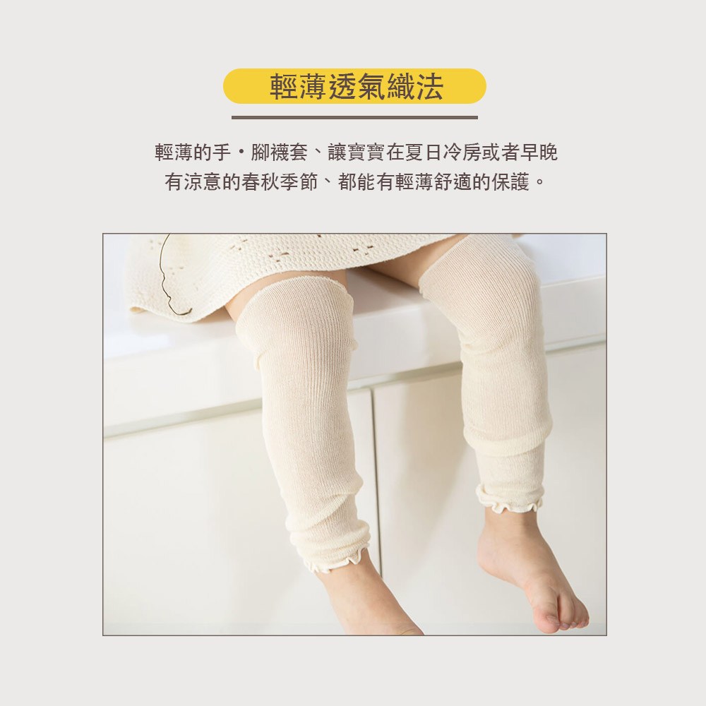 呵護寶寶嬌嫩肌膚,觸感柔軟,透氣性佳,給寶寶帶來舒適的穿著體驗。襪套長度 32 公分,手腳兩用設計,方便穿脫,可保護寶寶免受刮傷,同時提供溫暖呵護。全程日本製造,品質安心可靠。未經漂白及染色,呵護寶寶健康。
