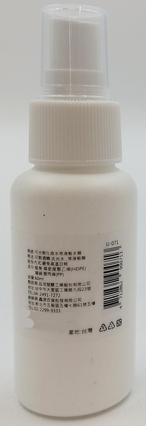 MEKO不透光分裝噴瓶是您旅行或日常生活中不可或缺的良伴。這款60ml的噴瓶採用HDPE材質,耐熱耐酸鹼,可安心分裝化妝水、酒精、消毒水等液體。不透光瓶身設計,能有效保護內容物,避免光照變質。台灣製造,品質保證,讓您隨時隨地都能方便攜帶和使用,保持最佳狀態。