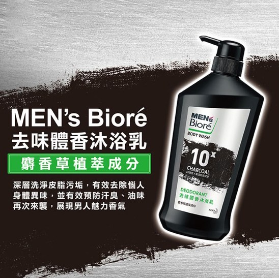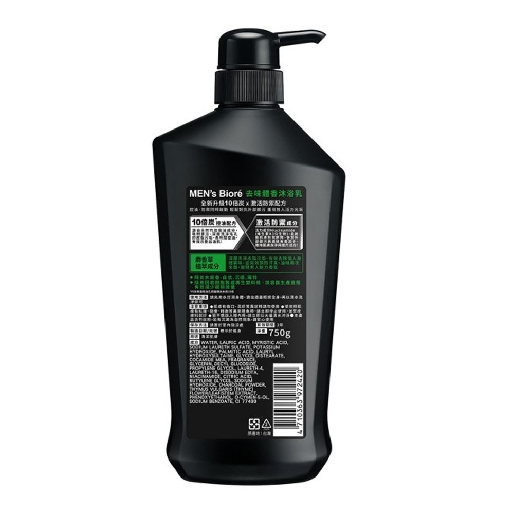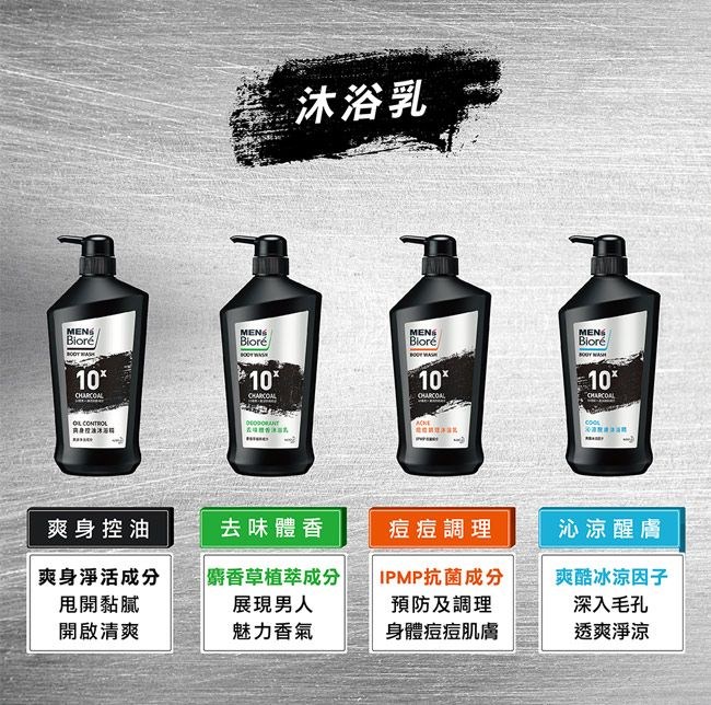 MEN's Biore 10倍炭男性專用去味體香沐浴乳 竹炭控油深層清潔 長時間清爽 麝香植萃沉穩木質香 專為油性肌膚設計, 750g, 2瓶