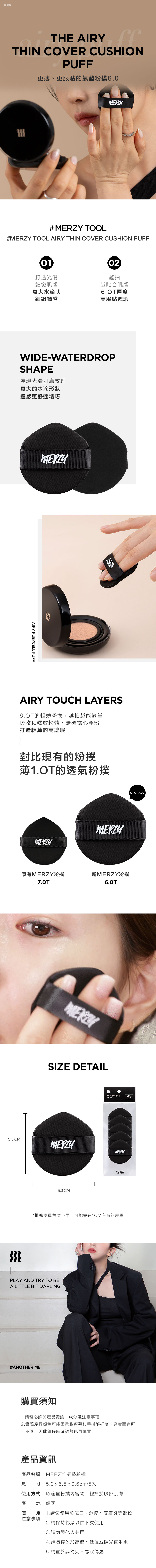 MERZY薄氣墊粉撲採用輕薄材質,能打造出空氣般的輕盈底妝,讓妝容更服貼持久。獨特的水滴狀設計,能輕鬆照顧到臉部各個細節,使妝容更加精緻無瑕。柔軟的粉撲觸感,上妝時倍感舒適,讓您輕鬆擁有完美妝容。這款粉撲不僅能提升妝感,更能呵護您的肌膚,讓您每次上妝都是一種享受。一包五入的設計,方便替換,保持清潔衛生。