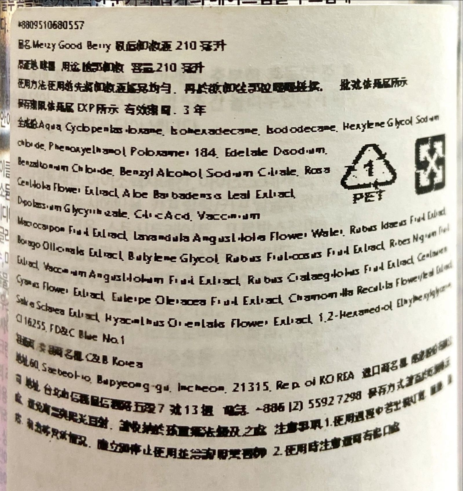 | 原產地/國 | 韓國 | 製造商或國內負責商名稱 | 請參考實際包裝所示 |