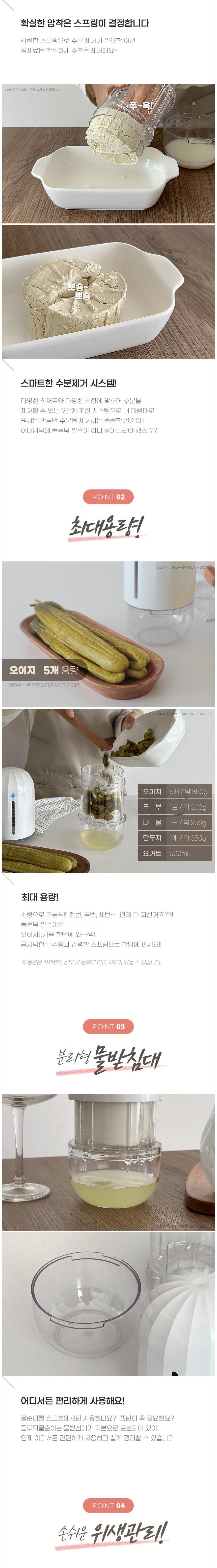 Mgmc Design 攜便式食物調理機是一款創新的廚房工具,採用獨家設計,能輕鬆去除食材中多餘的水分,同時保留食材的營養和新鮮度。它採用安全的SUS304不鏽鋼彈簧壓榨方式,不會產生熱量,確保食材的品質。這款調理機具有九段強度調節功能,可根據不同食材調整脫水程度,滿足您的各種烹飪需求。分離式接水盤設計,讓您隨時隨地都能方便使用,輕鬆整理。讓您的料理更簡單快速,提升營養和料理的品質。