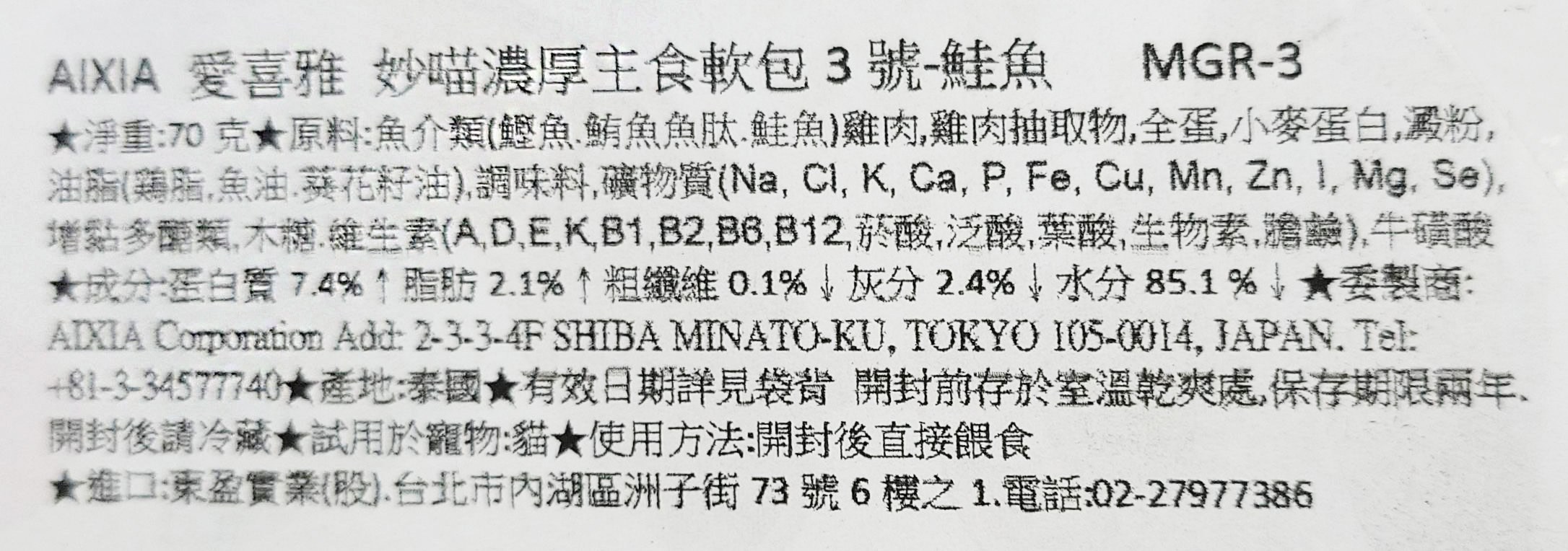 - 豐富鮭魚風味,挑逗貓咪味蕾,讓牠們愛不釋手,享受每一口美味。