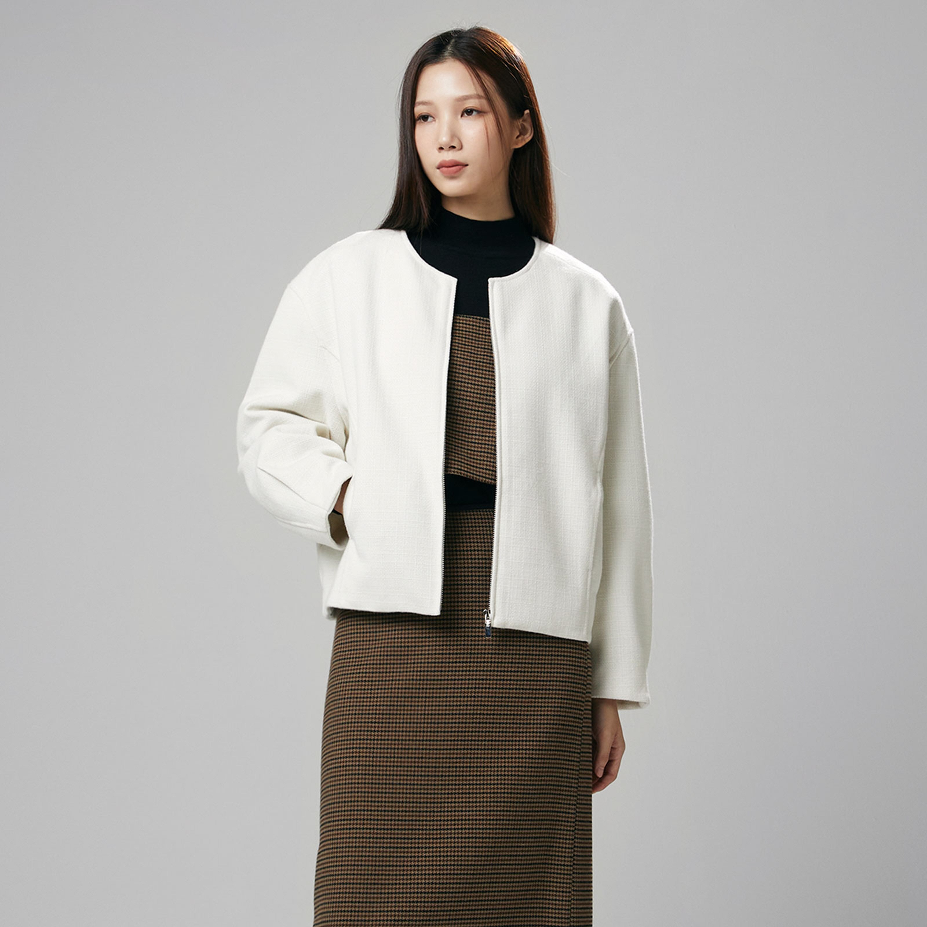 MIXXO女款圓領花呢長袖外套,採用精緻花呢布料,觸感柔軟舒適,保暖性極佳。圓領設計簡約大方,能完美展現頸部線條,輕鬆駕馭各種場合。此款外套剪裁合身,能修飾身形,讓您穿著更顯自信。無論是搭配裙裝或褲裝,都能展現出獨特的時尚品味。黑色和米白色可選,輕鬆打造多樣風格。