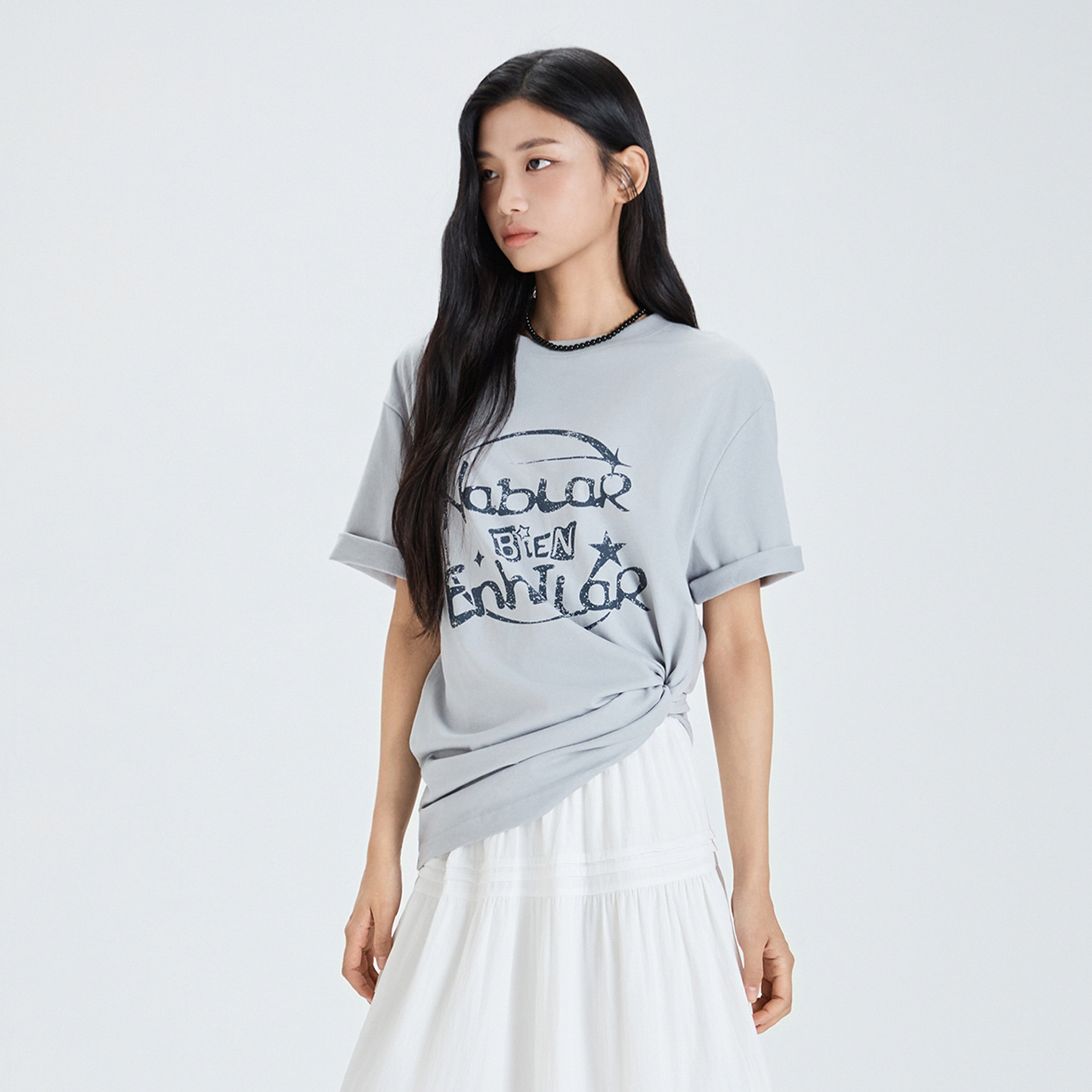MIXXO 女款寬鬆版型印花棉質短袖T恤