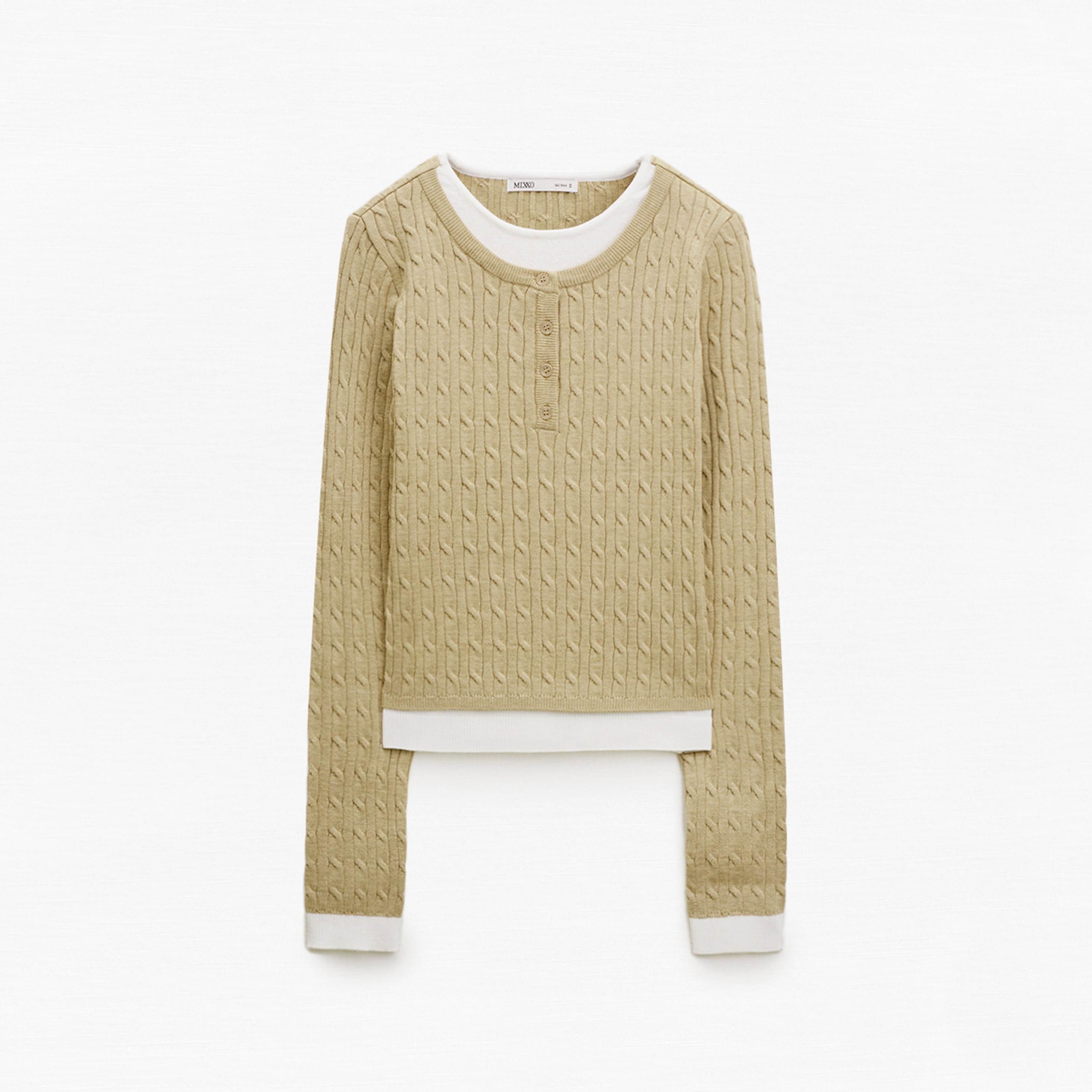 MIXXO女款層次穿搭麻花針織衫,採用柔軟舒適的針織布料製成,給您帶來溫暖呵護。獨特的層次穿搭設計,讓您輕鬆打造出多樣化的時尚造型,展現個人魅力。精緻的麻花編織紋理,為整體造型增添了質感與設計感,簡約而不失細節。米色配色溫柔百搭,輕鬆駕馭各種場合。無論是搭配裙裝或褲裝,都能展現您的時尚品味。此款針織衫是您秋冬季節不可或缺的時尚單品。