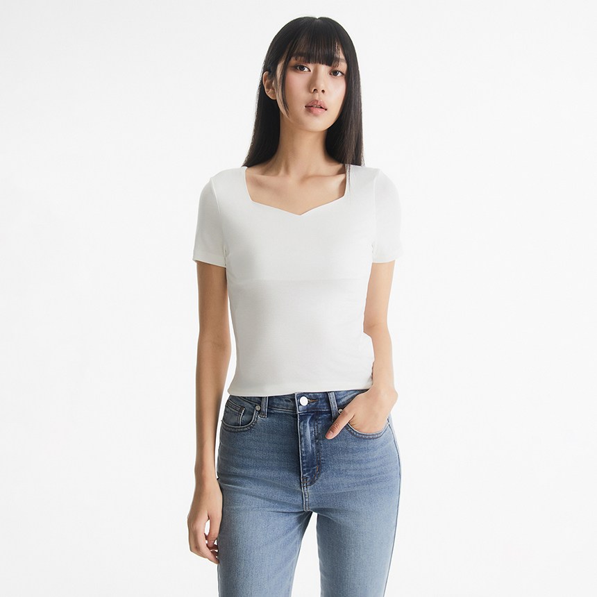 MIXXO女款心形領短袖T恤,採用柔軟舒適的布料製成,親膚透氣,讓您在夏季也能享受清爽體驗。獨特的心形領設計,巧妙展現鎖骨線條,增添女性的柔美氣質。簡約的象牙白色系,輕鬆搭配各式裙裝或褲裝,打造多樣化的時尚造型。無論是日常休閒還是約會穿搭,都能讓您散發迷人魅力。此款T恤提供多種尺寸選擇,滿足不同身形的需求,讓每位女性都能找到最合適的穿著體驗。
