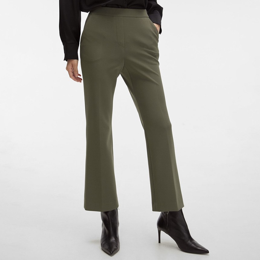 MIXXO女款腰部鬆緊微喇叭九分褲,採用舒適彈性布料,讓您活動自如。腰部隱藏式鬆緊帶設計,修飾身形,告別小腹煩惱,穿脫更方便。微喇叭褲型剪裁,巧妙修飾腿部線條,展現優雅身姿。無論是日常休閒或上班穿搭,都能輕鬆駕馭,展現您的時尚品味。此款九分褲有多種顏色可供選擇,滿足您的不同穿搭需求。
