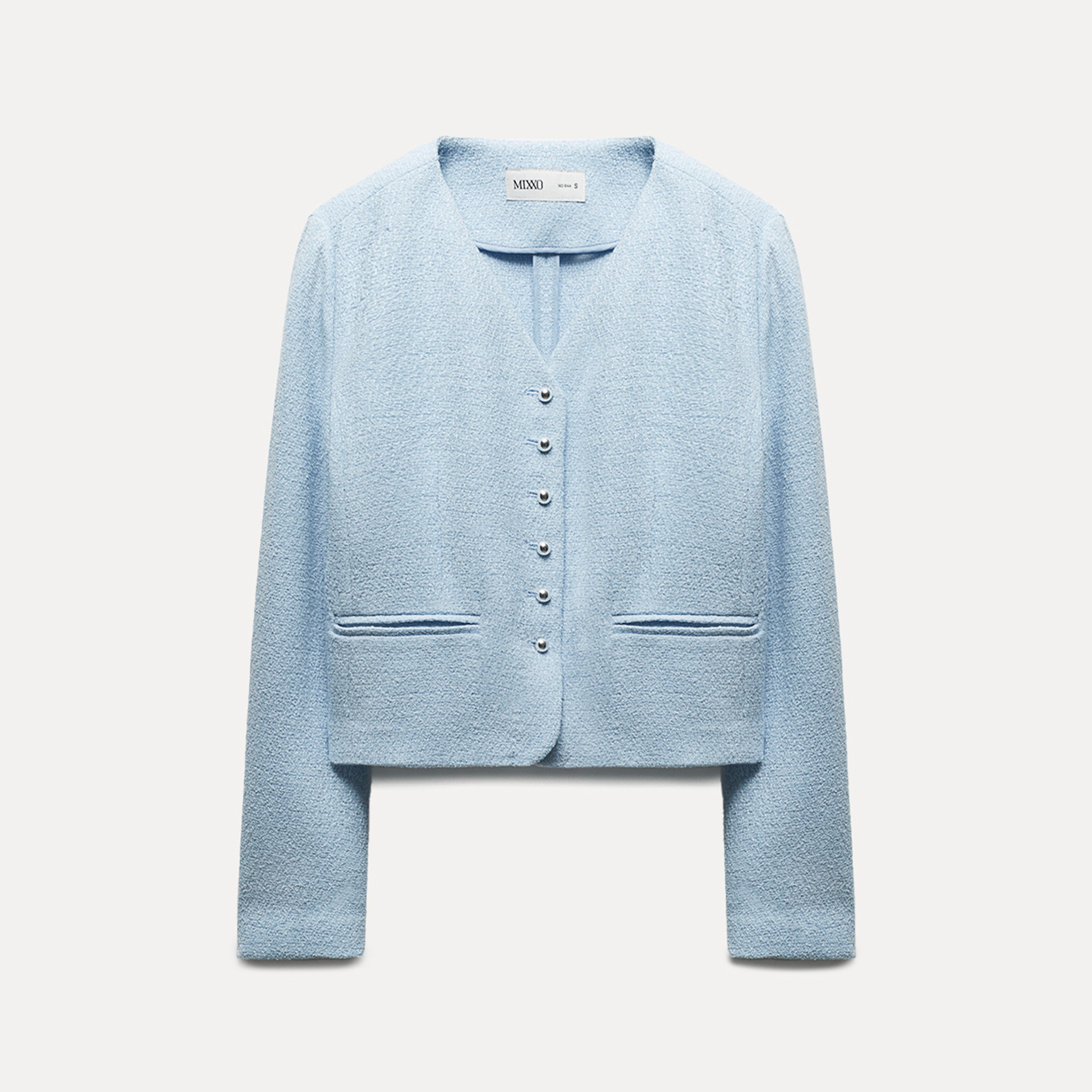 MIXXO女款V領粗花呢夾克,採用經典V領設計,能巧妙修飾頸部線條,展現女性的優雅氣質。粗花呢材質不僅增添了服裝的質感,同時也提供了舒適的穿著體驗與保暖效果,非常適合在換季時節穿著。此款夾克的藍色調簡約百搭,無論是搭配裙裝或是褲裝,都能輕鬆打造出時尚造型。精緻的剪裁與細節設計,讓您在各種場合都能散發自信光彩。無論是上班通勤或是休閒約會,都能展現您的獨特品味。